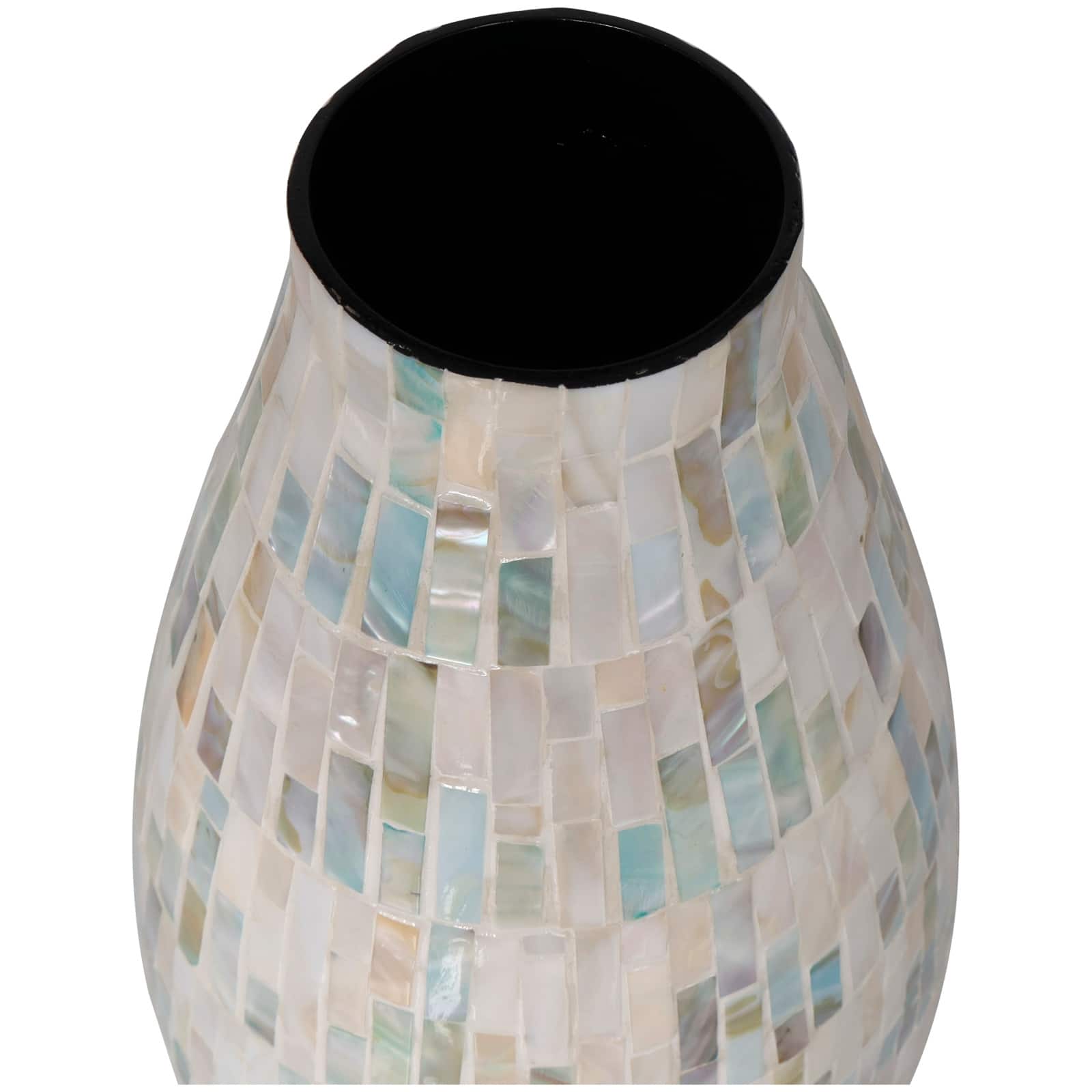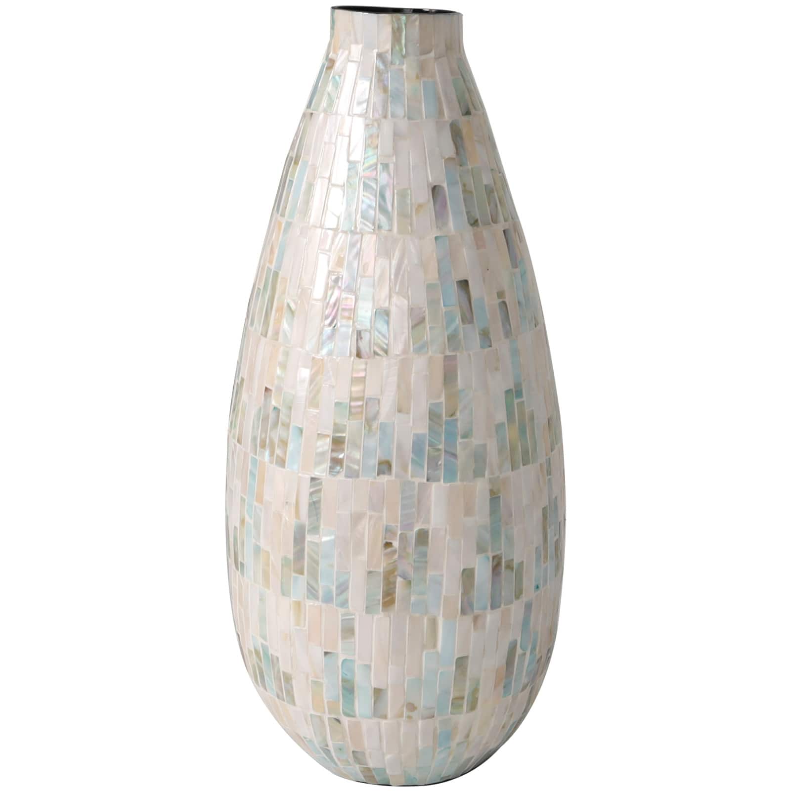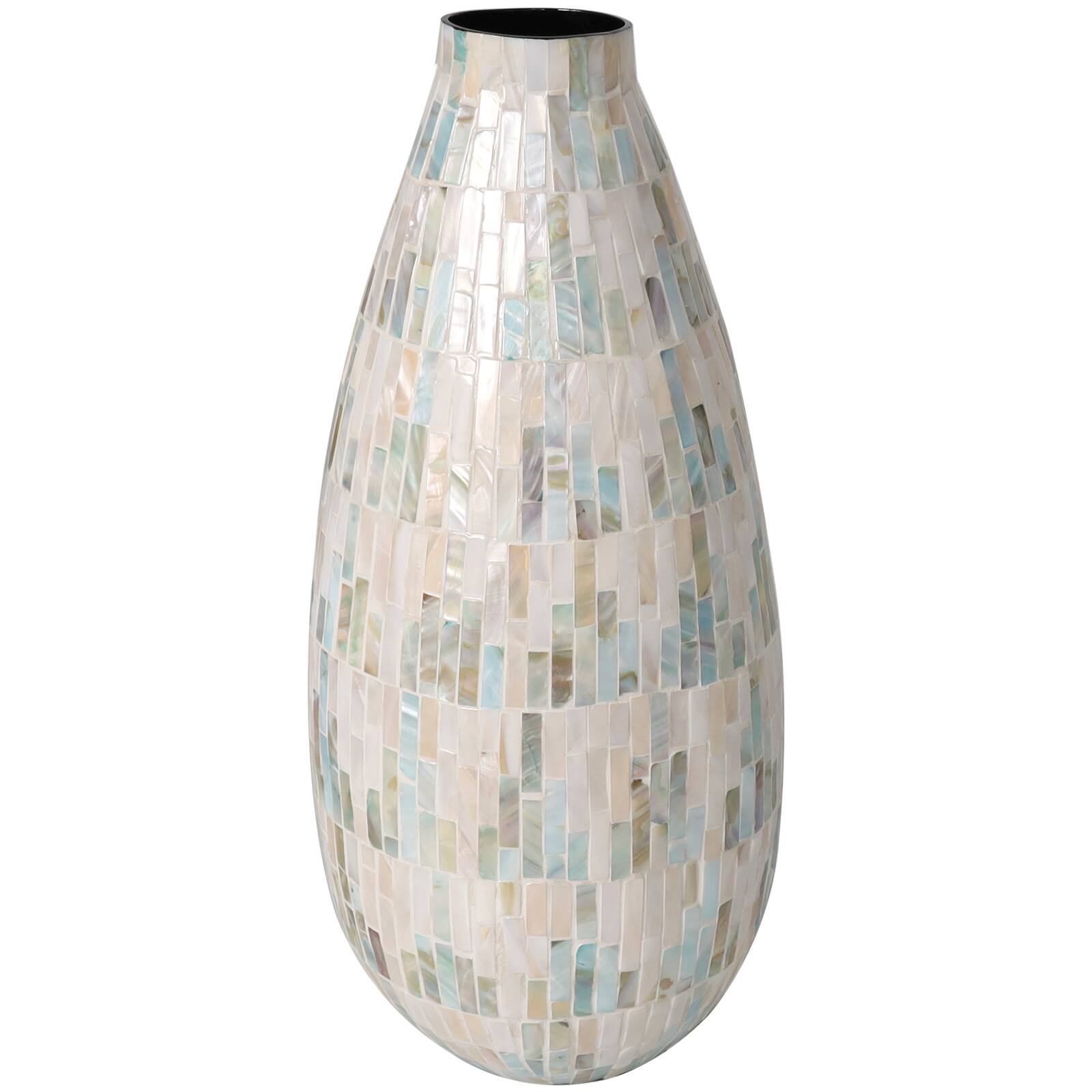 19" White Mother of Pearl Handmade Mosaic Inspired Vase with Pastel Blue & Pink Accents