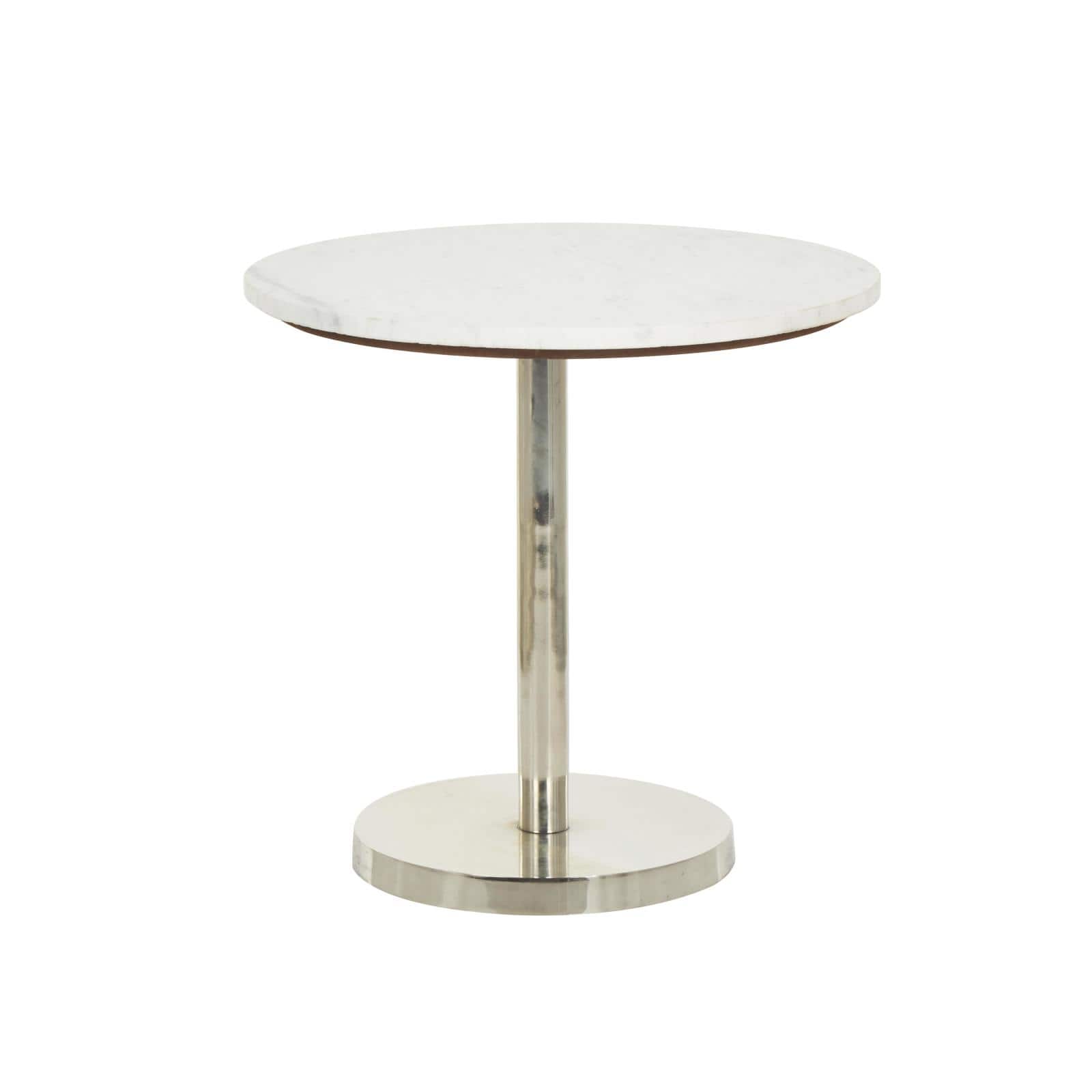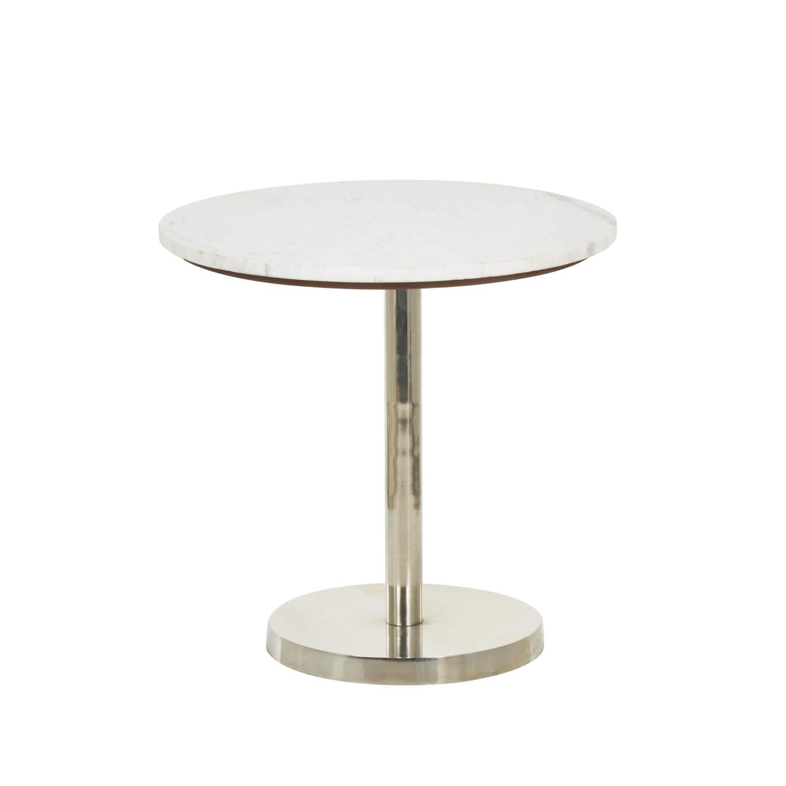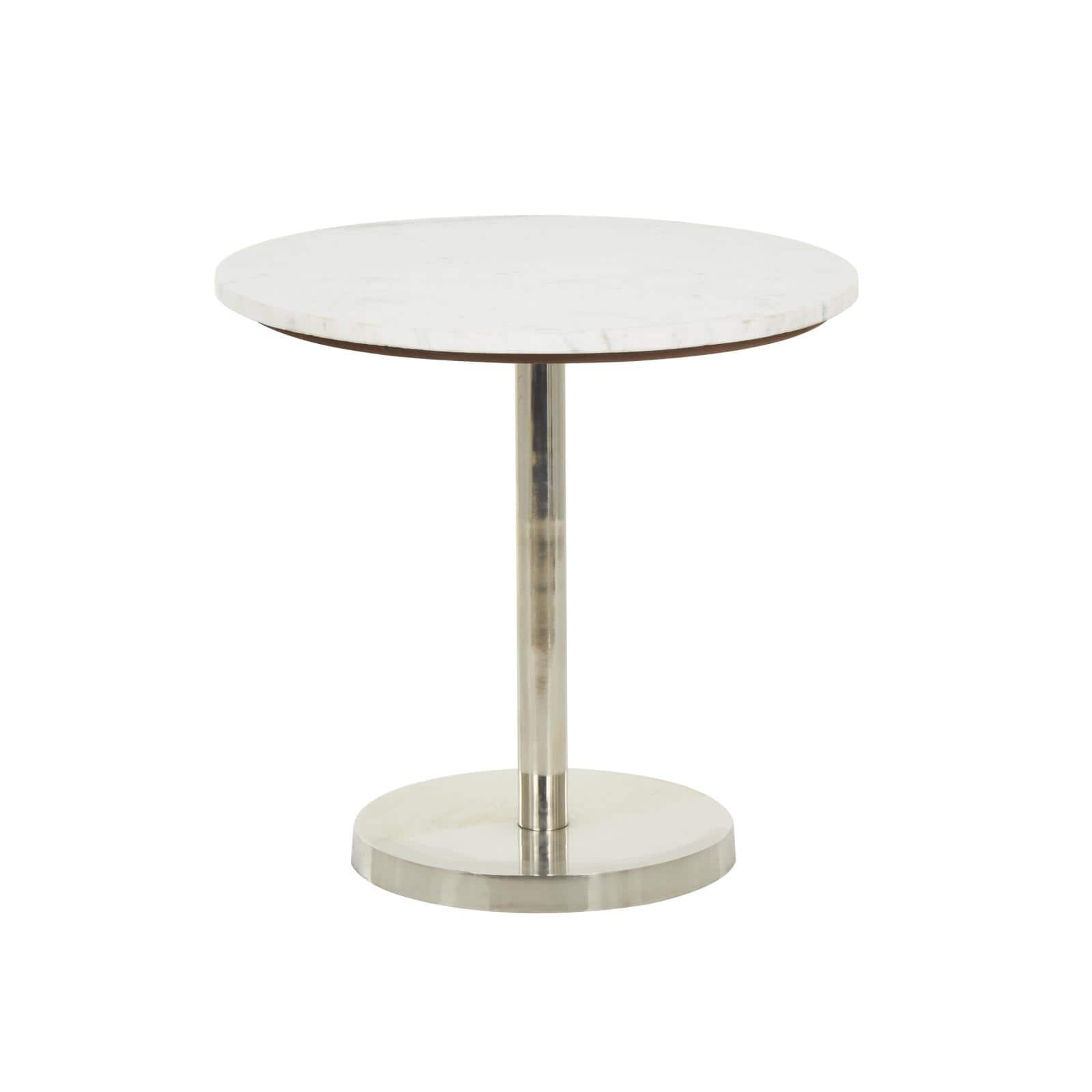 19" x 20" Silver Metal Geometric Pedestal Accent with White Marble Tabletop