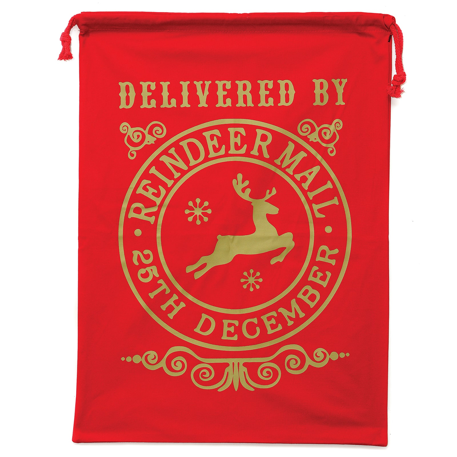 19" x 26" Delivered By Christmas Red Cotton Drawstring Bag