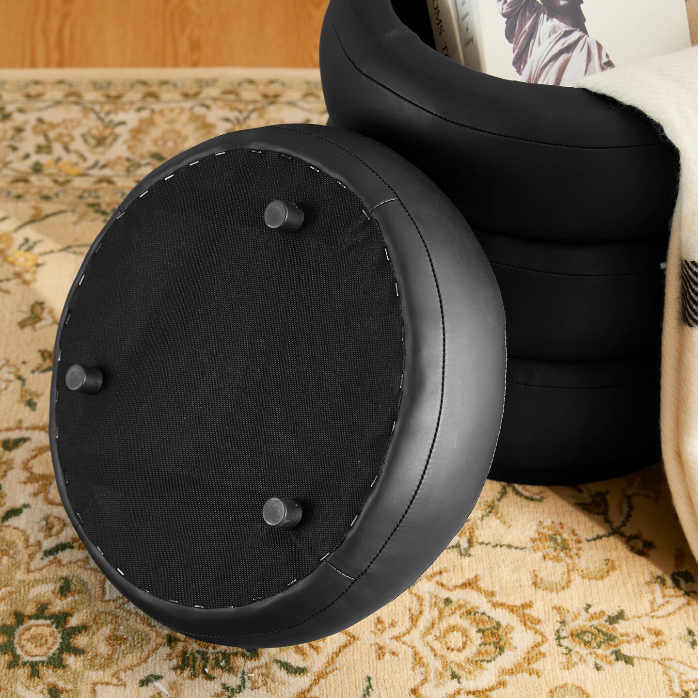 19.5"H Leather Upholstered Storage Ottoman or Accent Stool