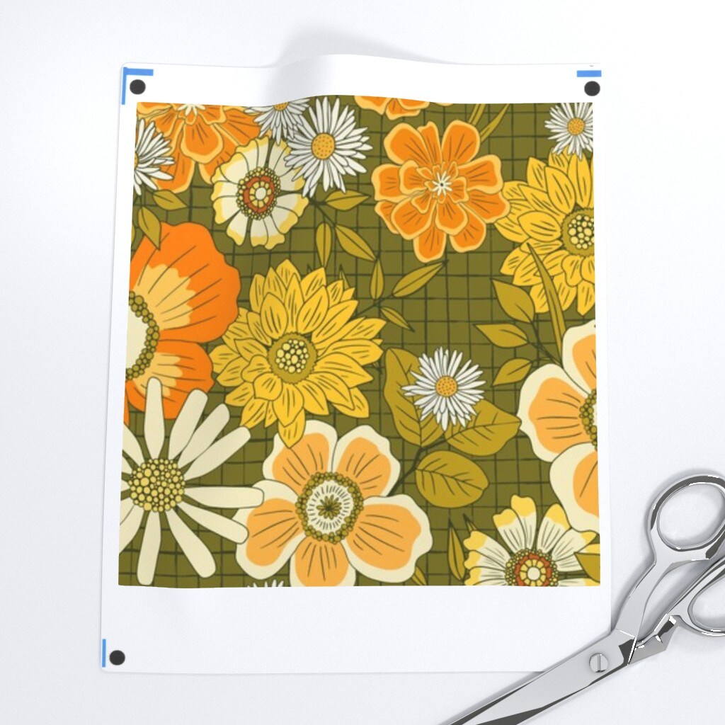 1970S Retro Avocado Green Yellow Hippie Groovy Daisies Flower Power Boho Brown Orange Yellow Custom Printed Fabric by Spoonflower Various Fabrics by the Yard or Fat Quarter