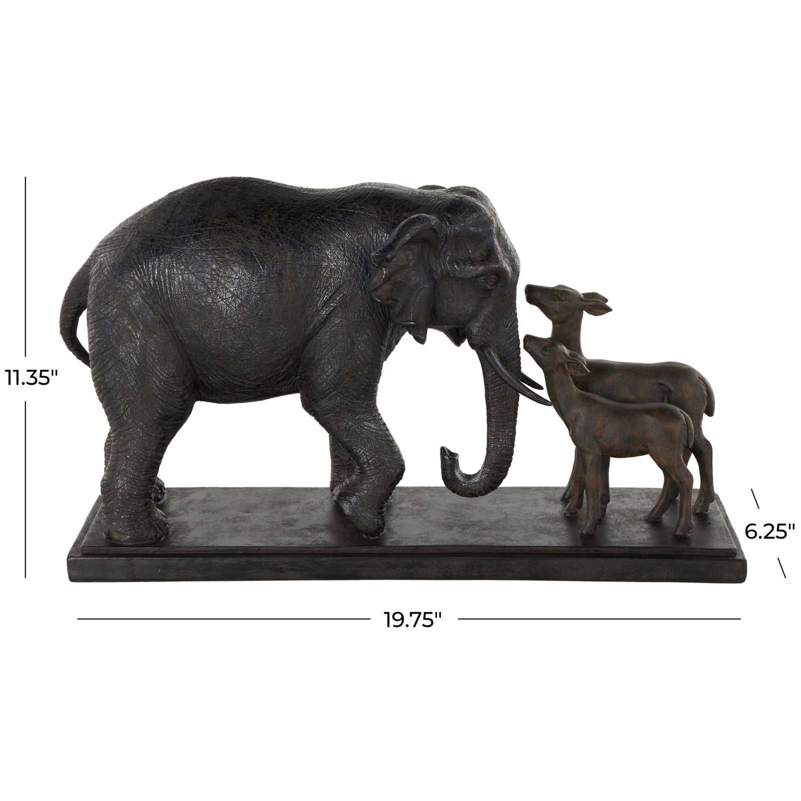 19.75" Black Elephant Walking Sculpture with Dark Brown Deer