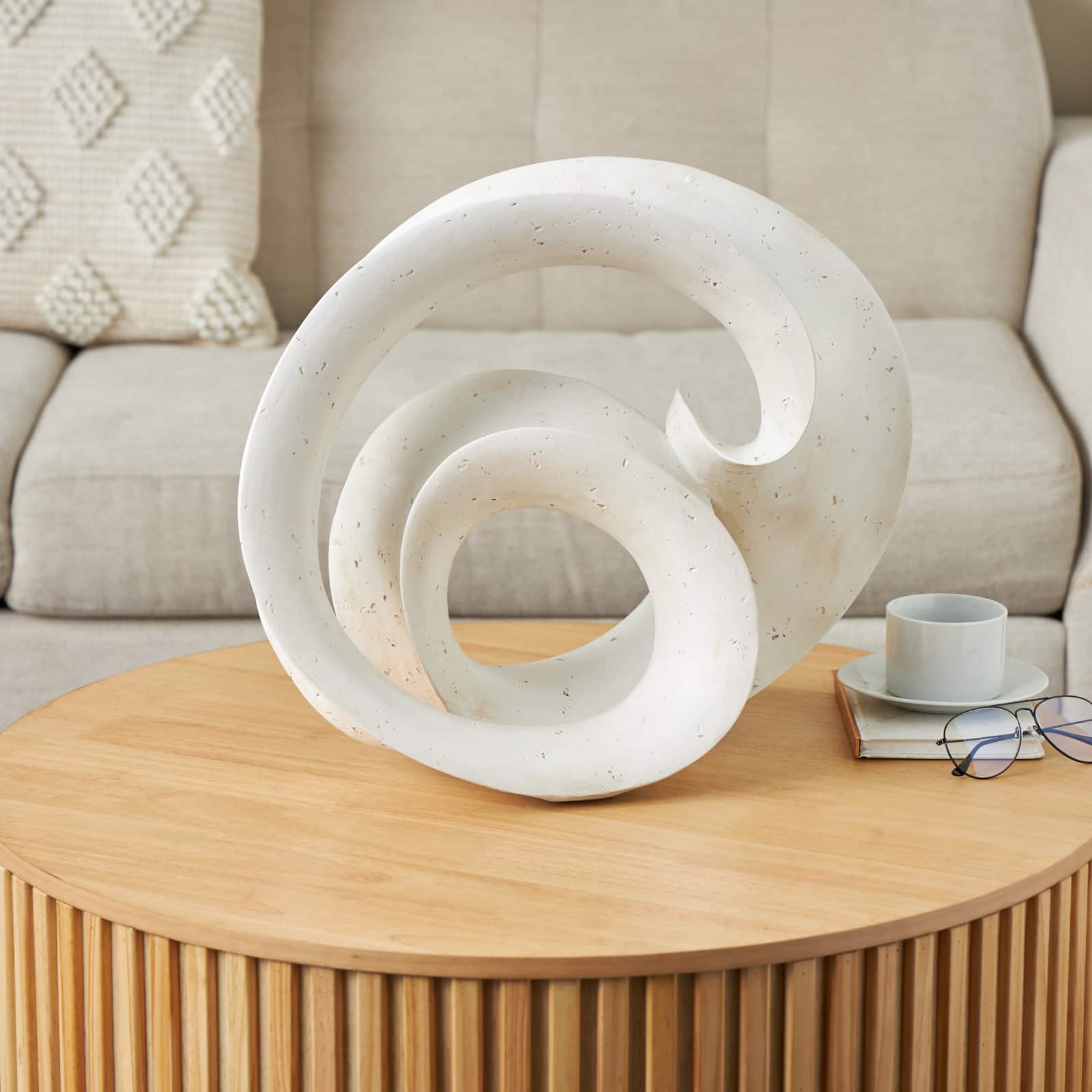 19.75" White Abstract Wavy Shaped Decorative Sculpture with Cutouts & Speckled Texturing