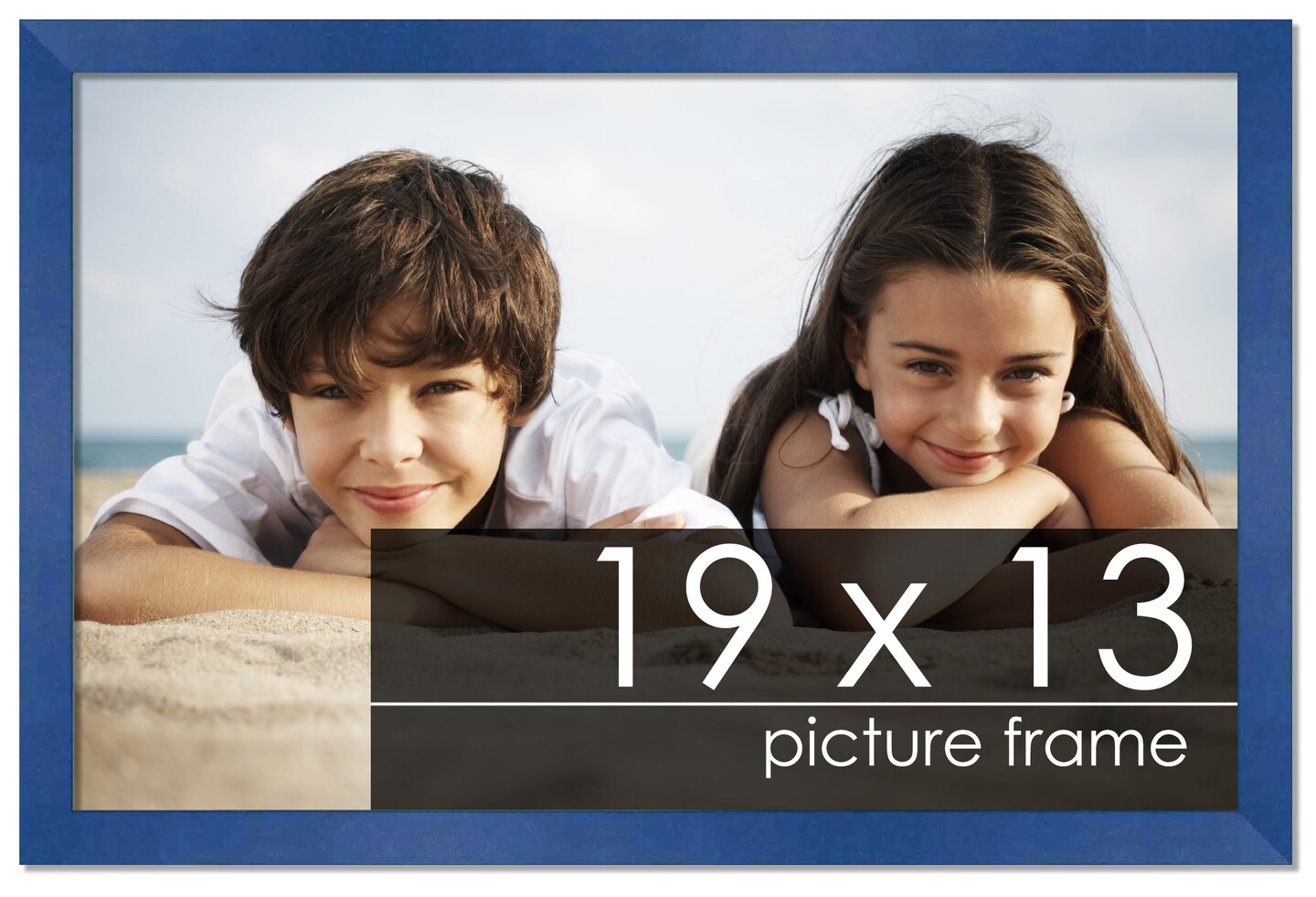 19x13 Classic Modern Blue Picture Frame - UV Acrylic, Foam Board Backing, Hanging Hardware