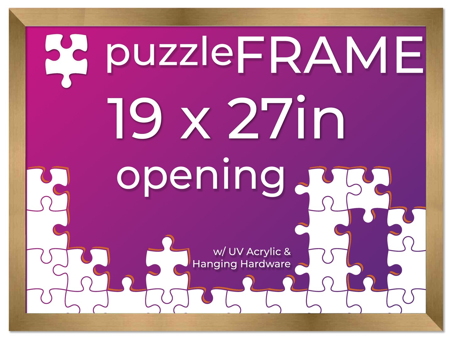 19x27 Jigsaw Puzzle Frame Kit - Kit Includes Puzzle Glue Sheets, Bronze Wood Puzzle Frame, UV Acrylic, Backing,, Hanging Hardware