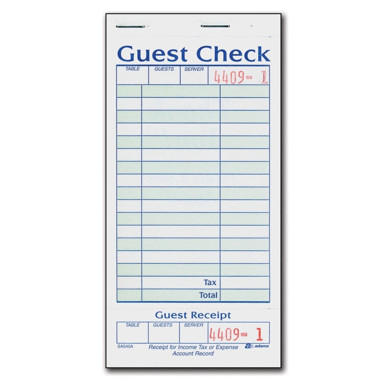 1-Part Guest Check With Stub - 20 Books/50 Checks