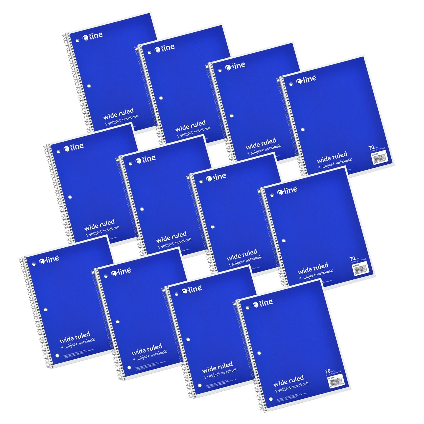 1-Subject Notebook, 70 Page, Wide Ruled, Blue, Pack of 12