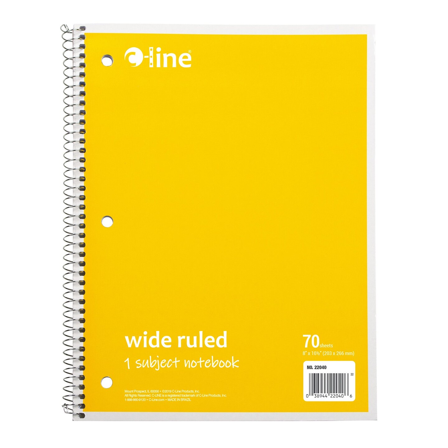 1-Subject Notebook, 70 Page, Wide Ruled, Yellow