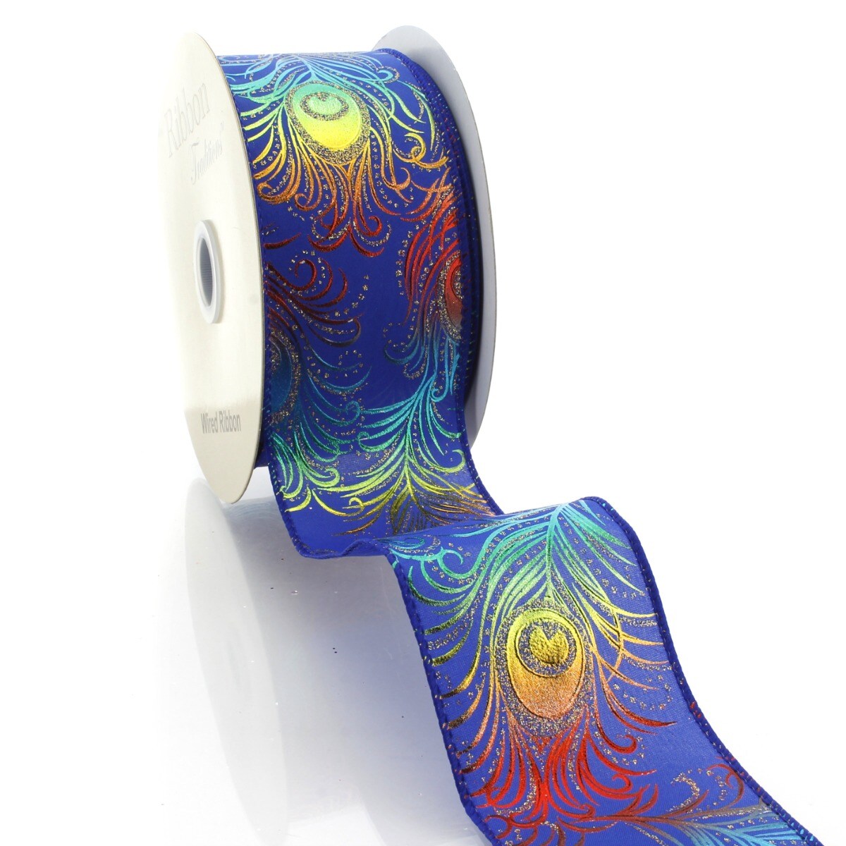 2 1/2" Wired Ribbon Blue Rainbow Peacock - 25 Yard