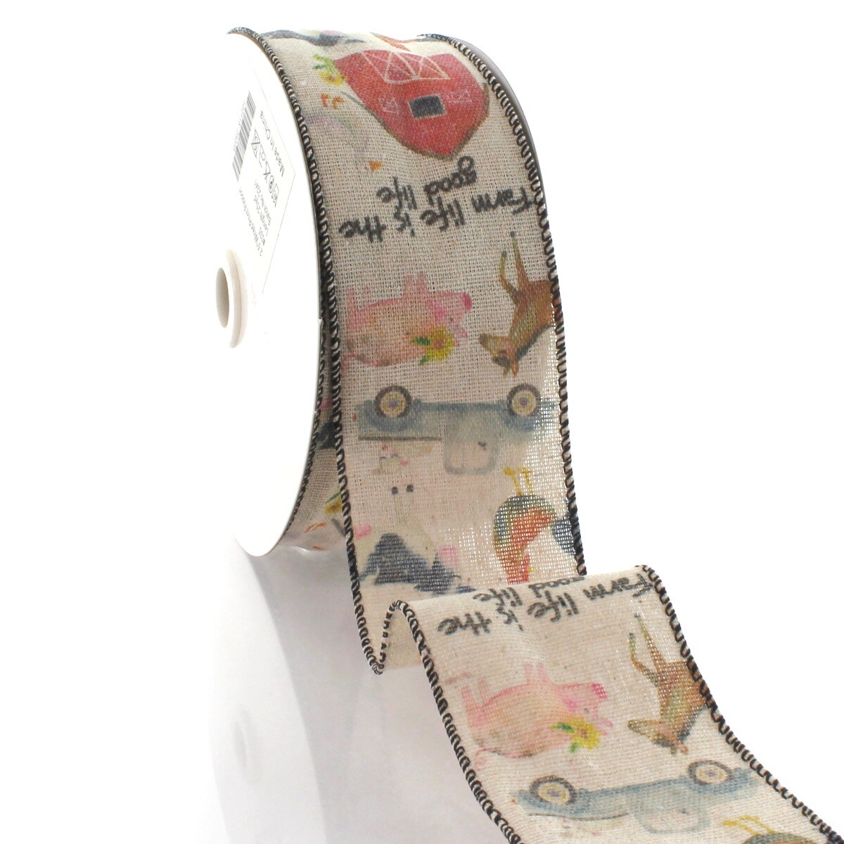 2 1/2" Wired Ribbon Farm Life Burlap 25 Yards