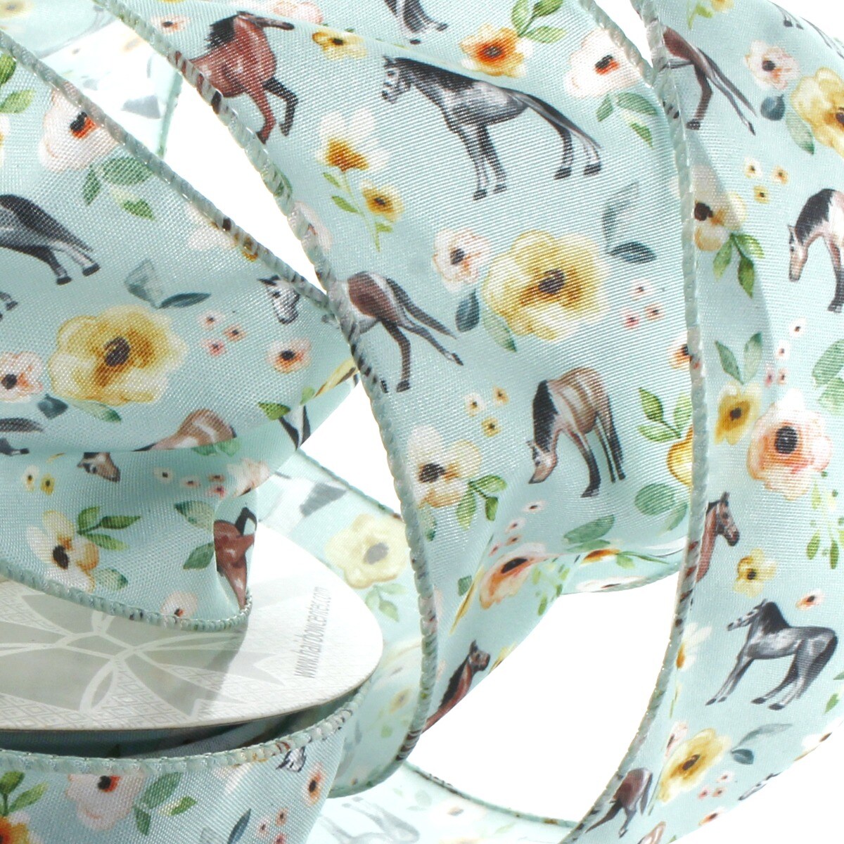 2 1/2" Wired Ribbon Floral Wild Horses 25 Yards