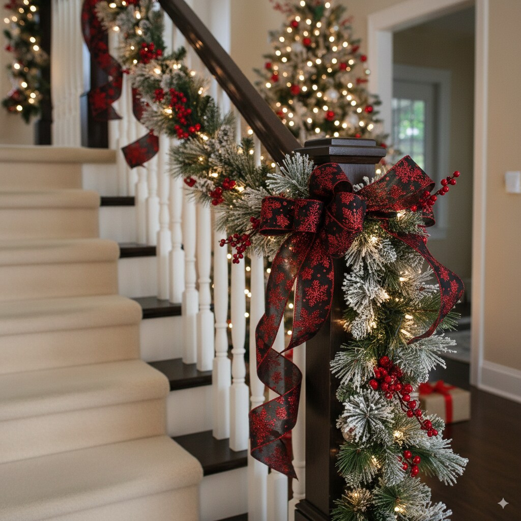 2 1/2" Wired Ribbon Glitter Snowflakes Satin Black/Red - 25 Yards
