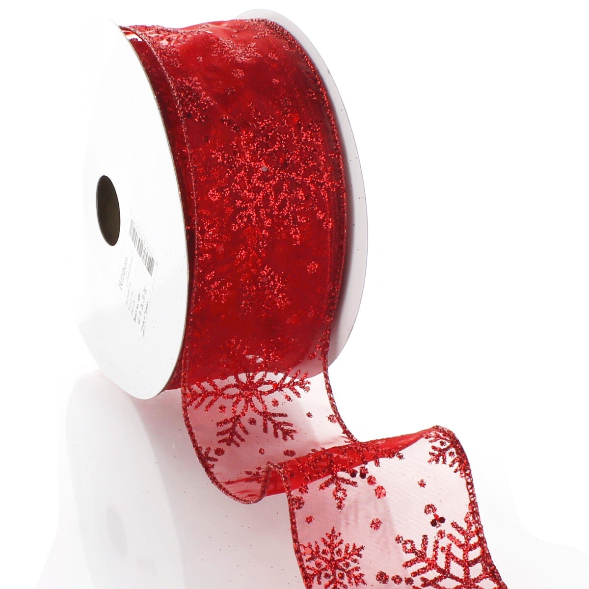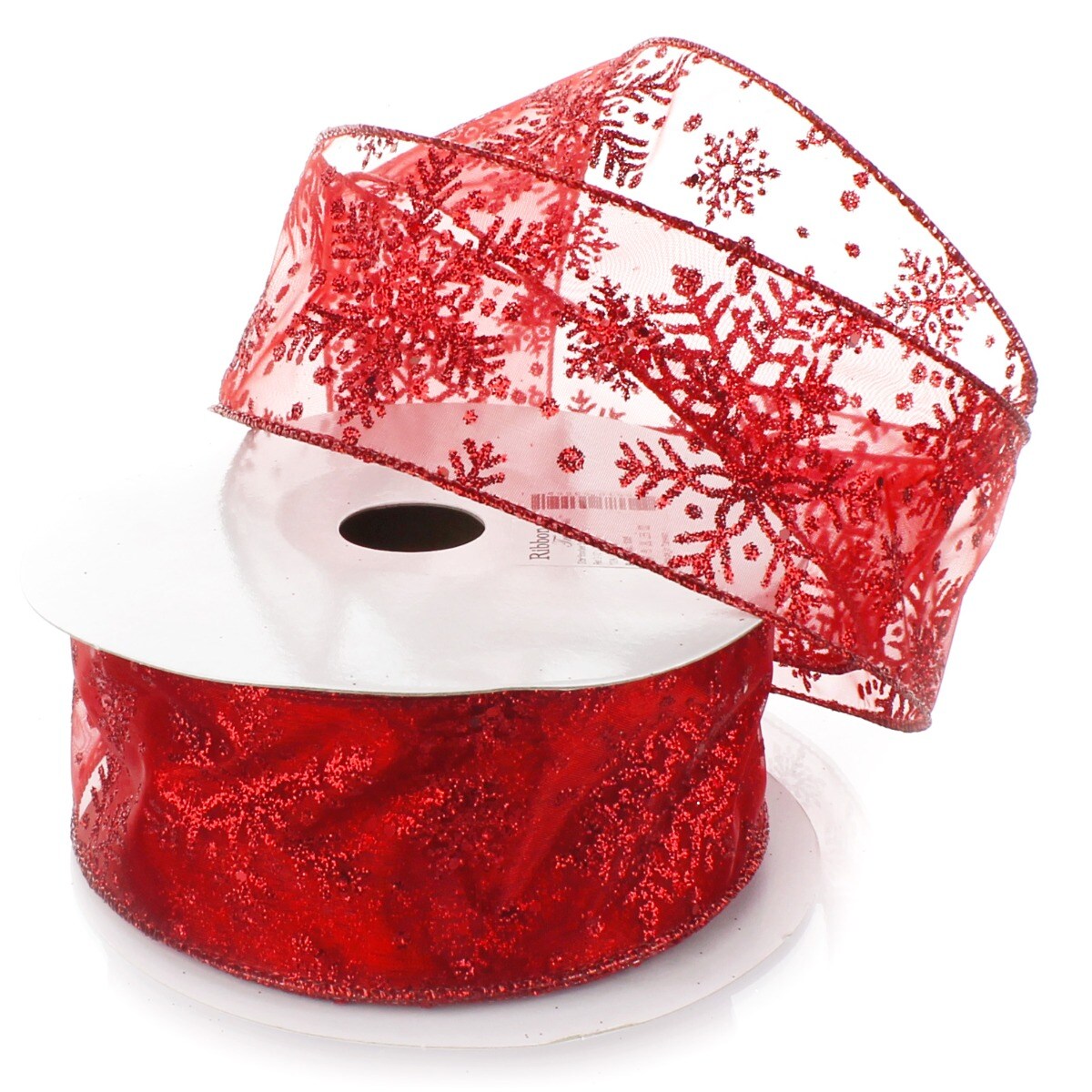 2 1/2" Wired Ribbon Glitter Snowflakes Sheer Red - 10 Yards