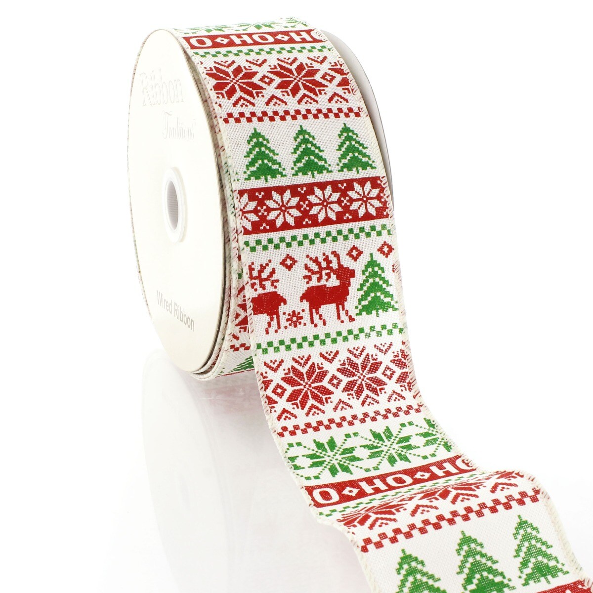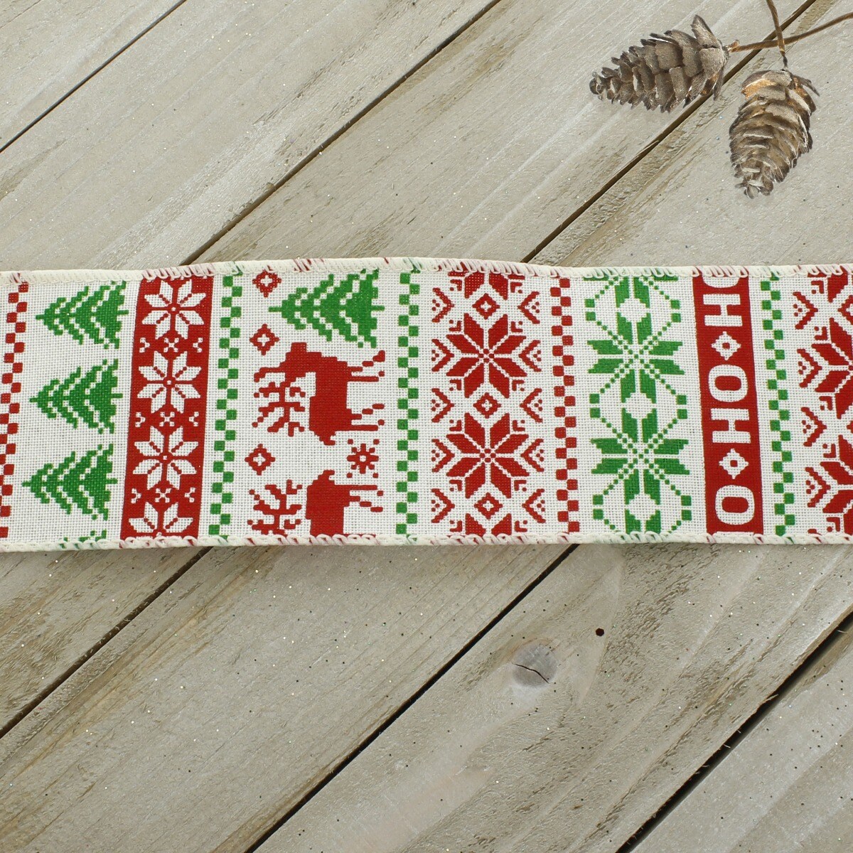 2 1/2" Wired Ribbon Ho Ho Fair Isle Burlap - 25 Yards