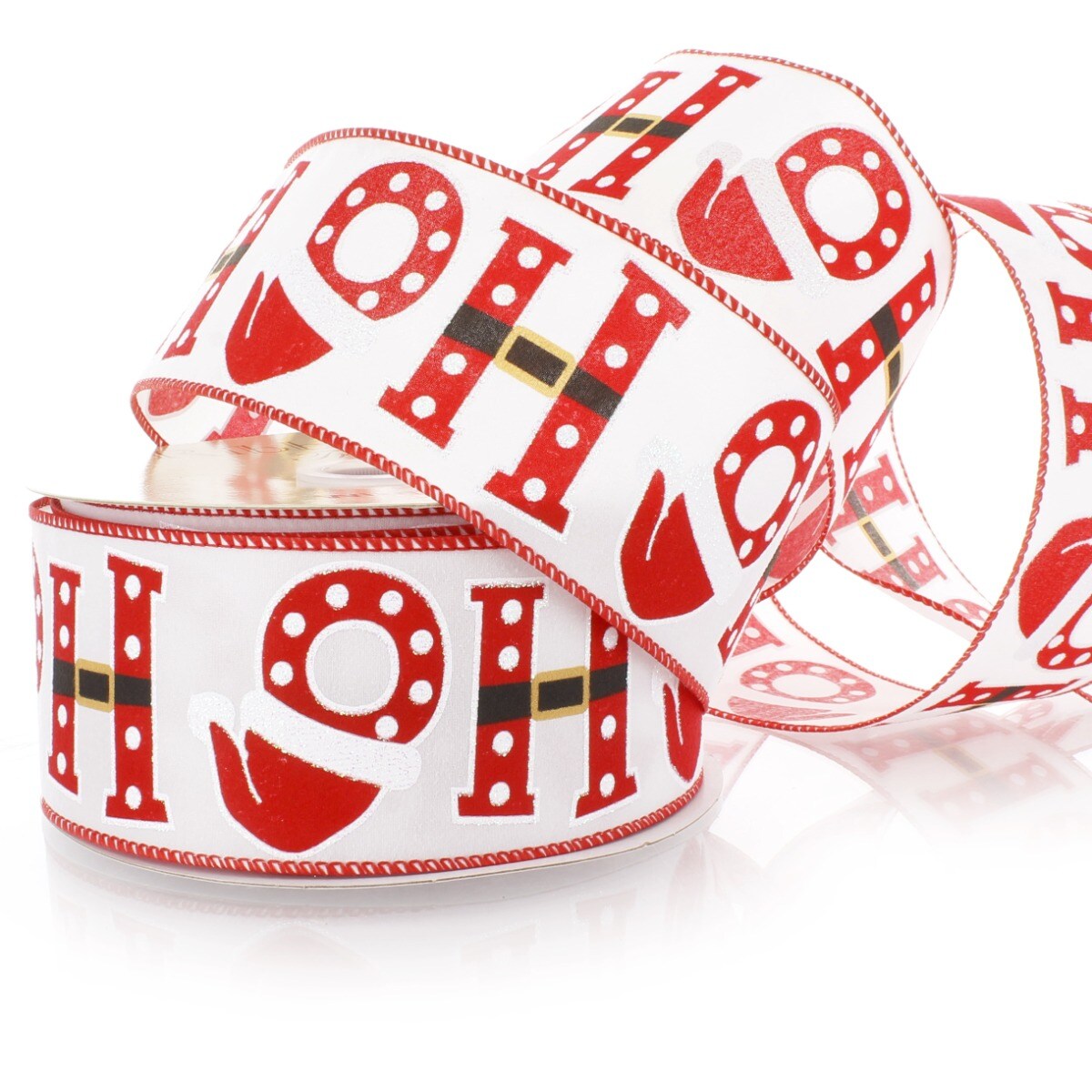 2 1/2" Wired Ribbon Ho Ho Santa - 10 Yard