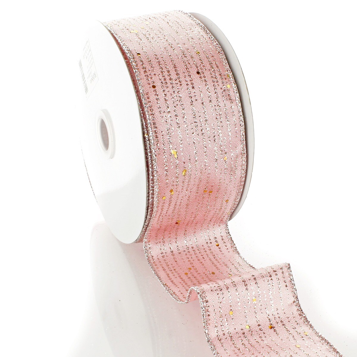 2 1/2" Wired Ribbon Horizontal Glitter/Sequin Stripes Solid Rose Gold/Silver - 25 Yards