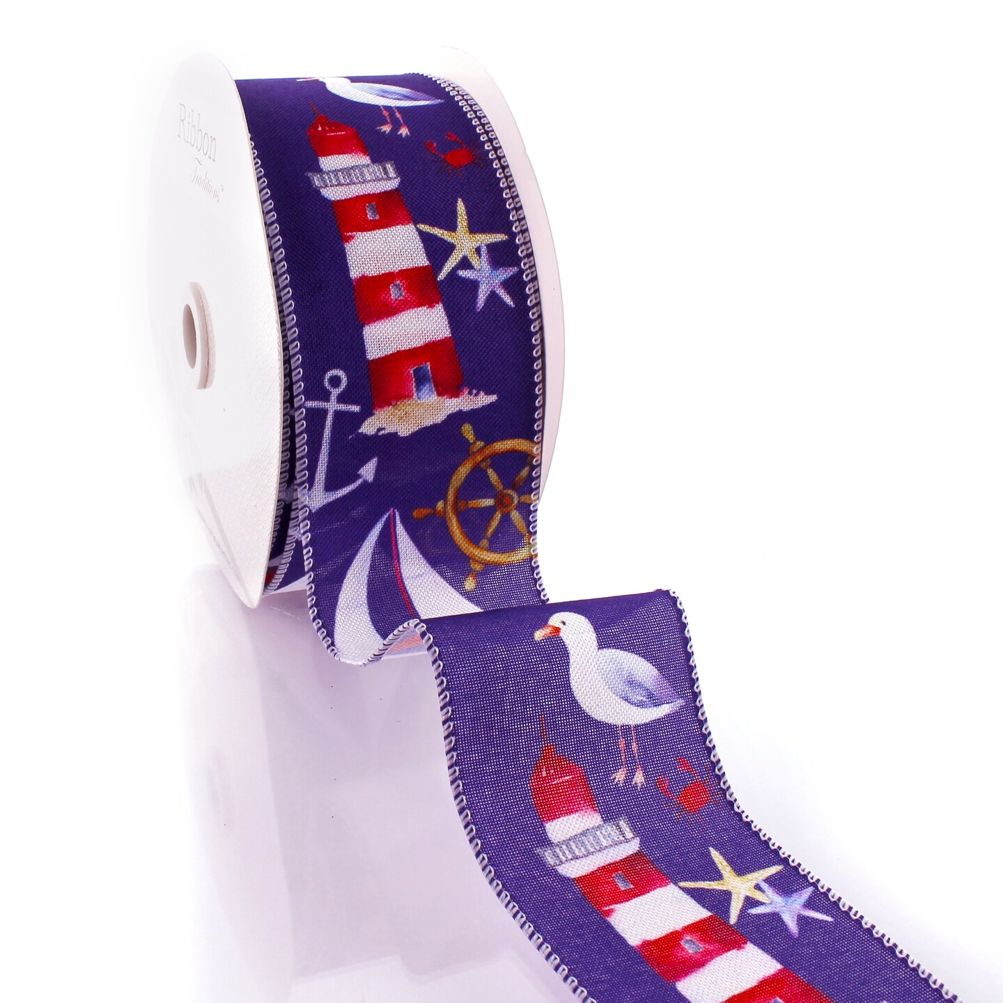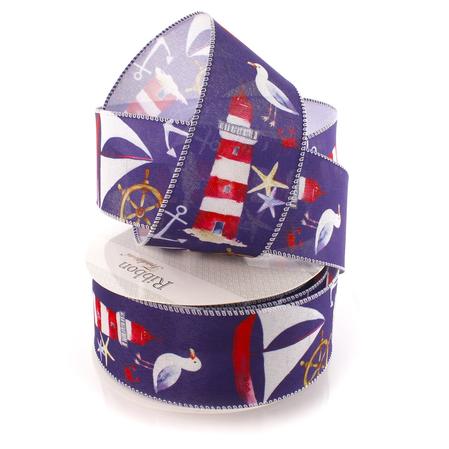 2 1/2" Wired Ribbon Nautical Seaside Mix Navy 10 Yards