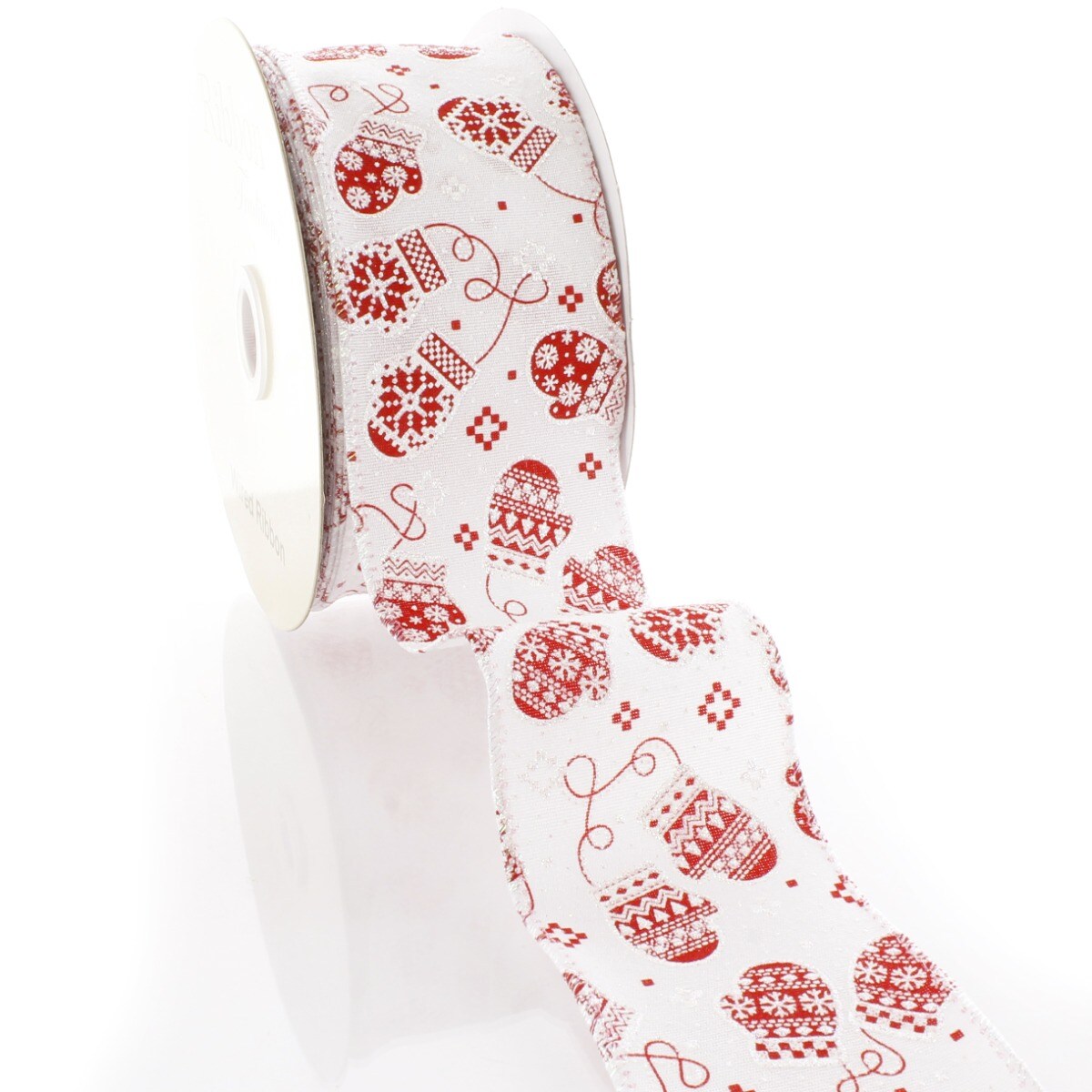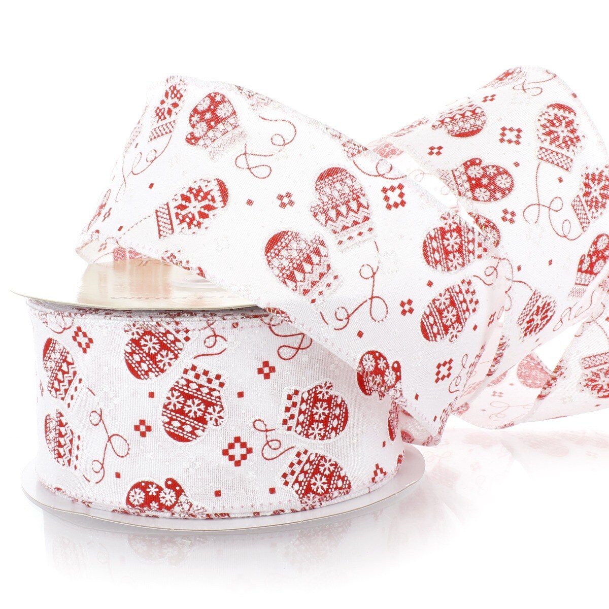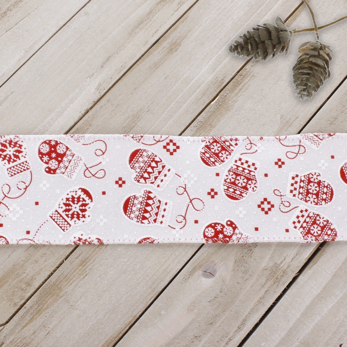 2 1/2" Wired Ribbon Red Winter Mittens - 10 Yard