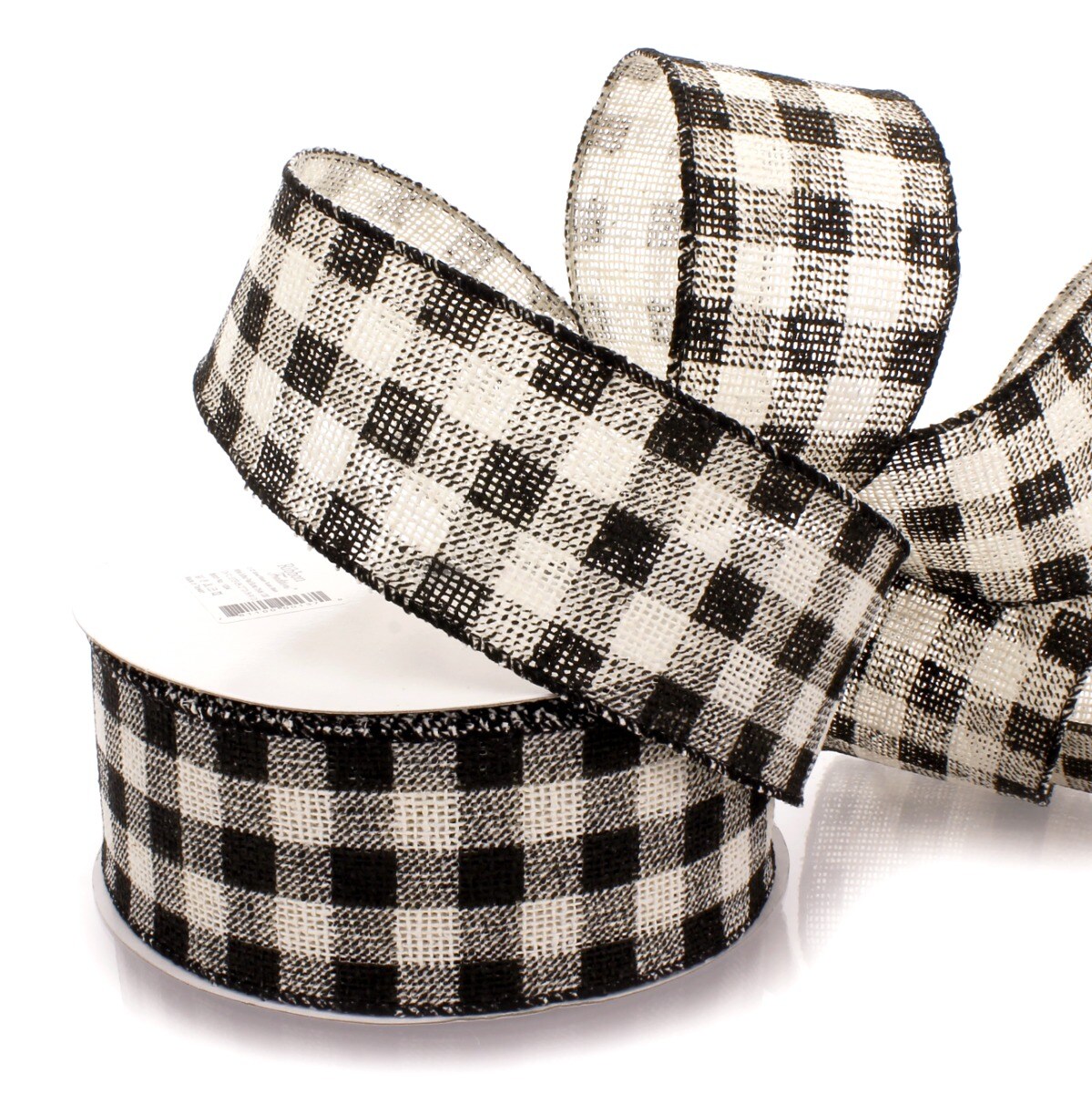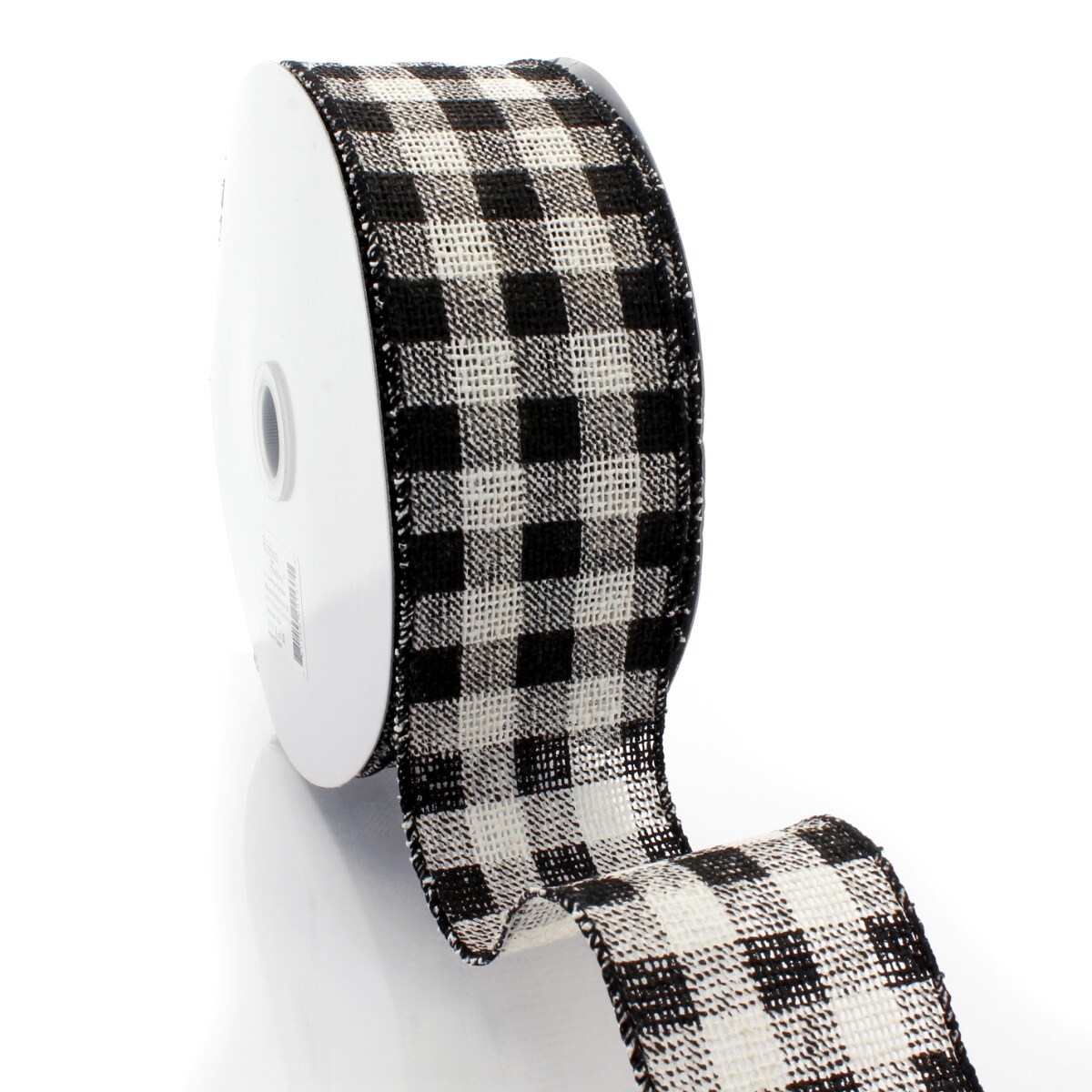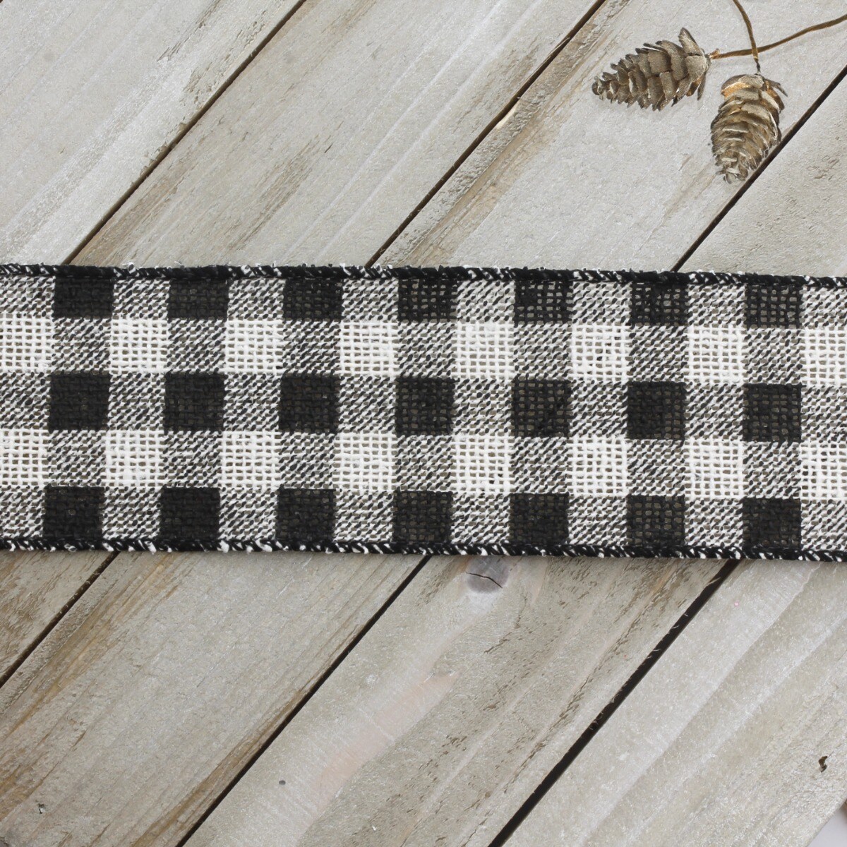 2 1/2" Wired Ribbon Rustic Black/White Buffalo Plaid Burlap 25 Yards