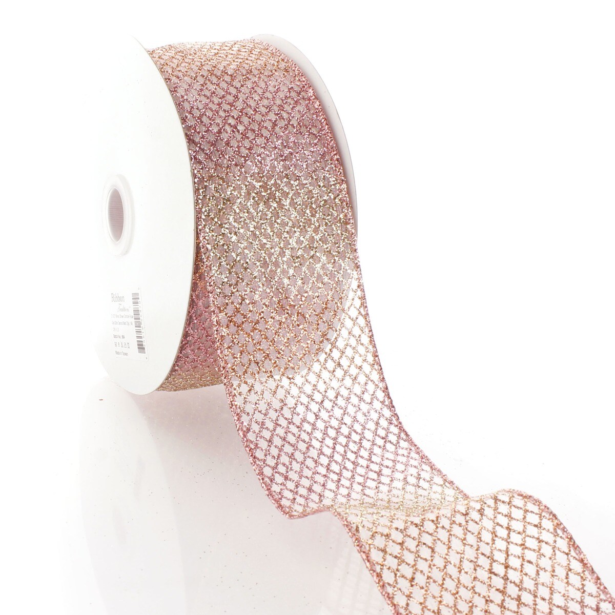 2 1/2" Wired Ribbon Sheer Ombre Glitter Diamond Mesh - Rose Gold - 25 Yards