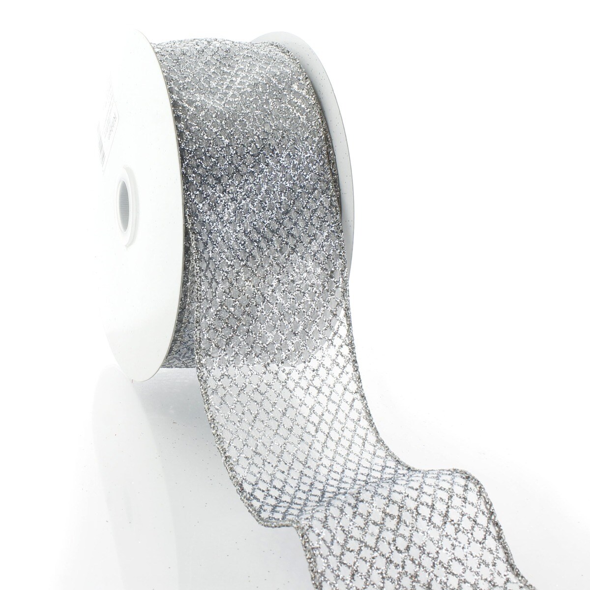 2 1/2" Wired Ribbon Sheer Ombre Glitter Diamond Mesh - Silver - 10 Yards