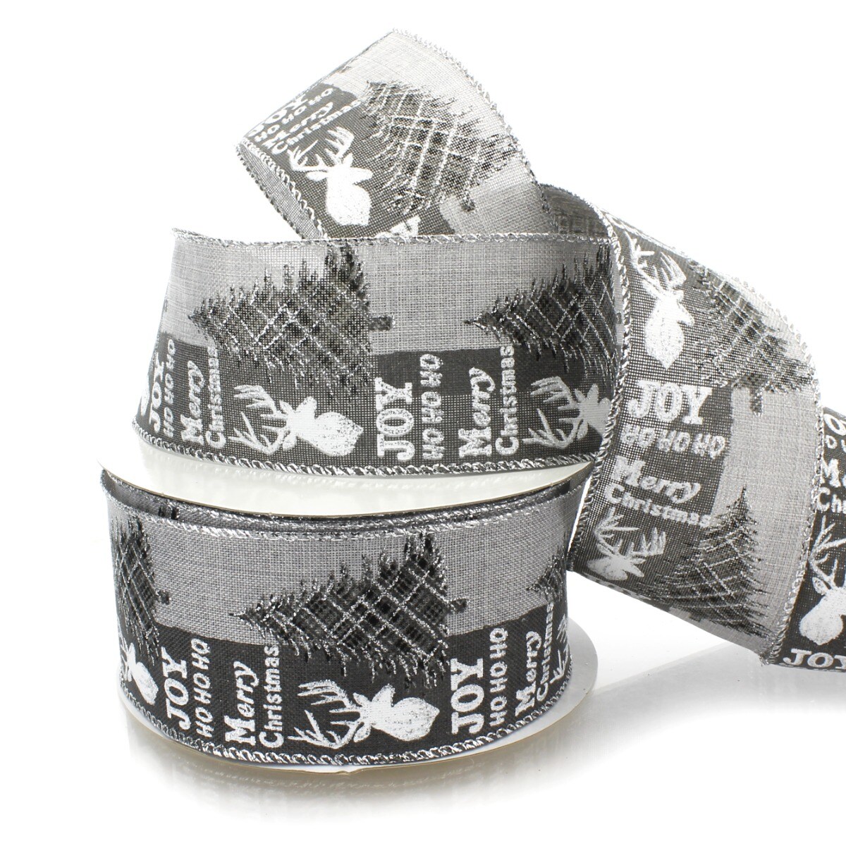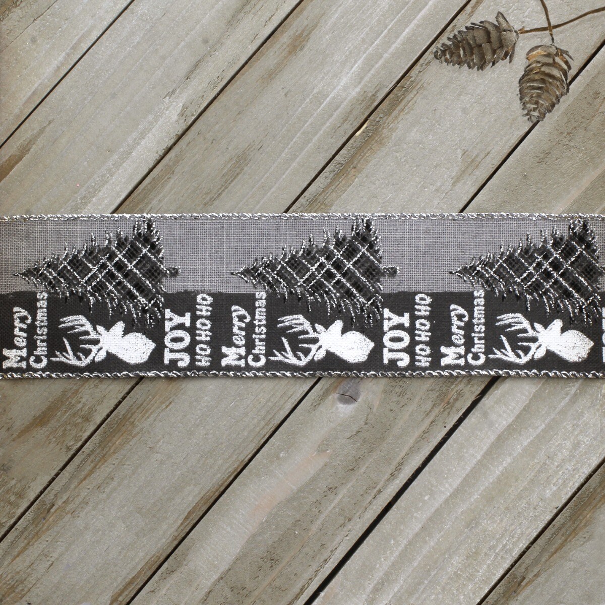 2 1/2" Wired Ribbon Silver Moose Christmas - 10 Yards