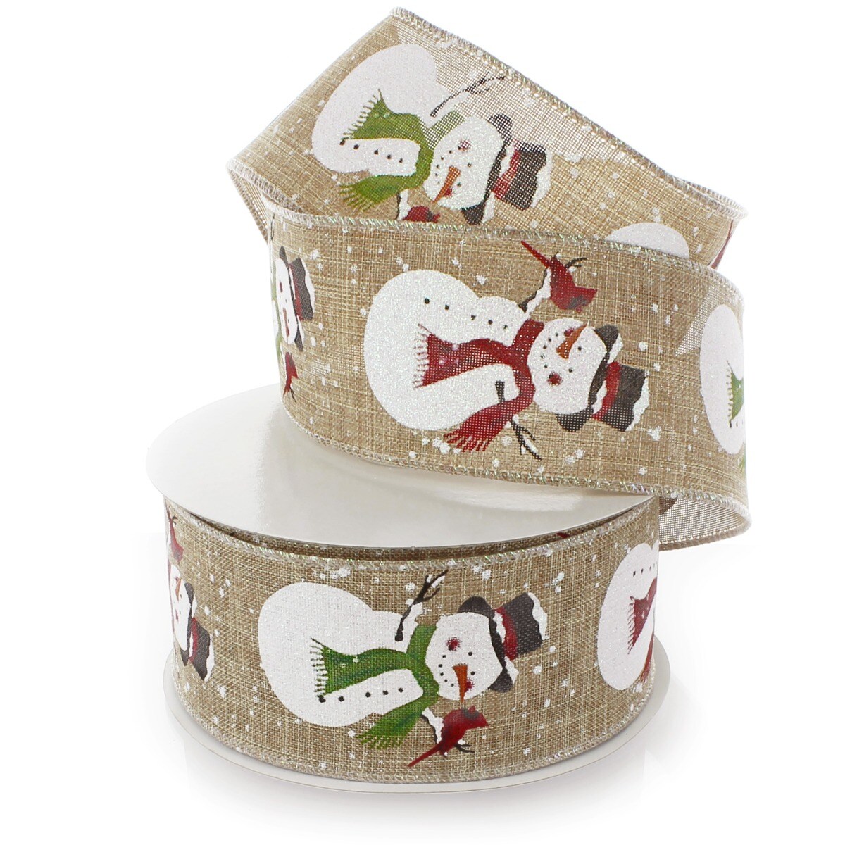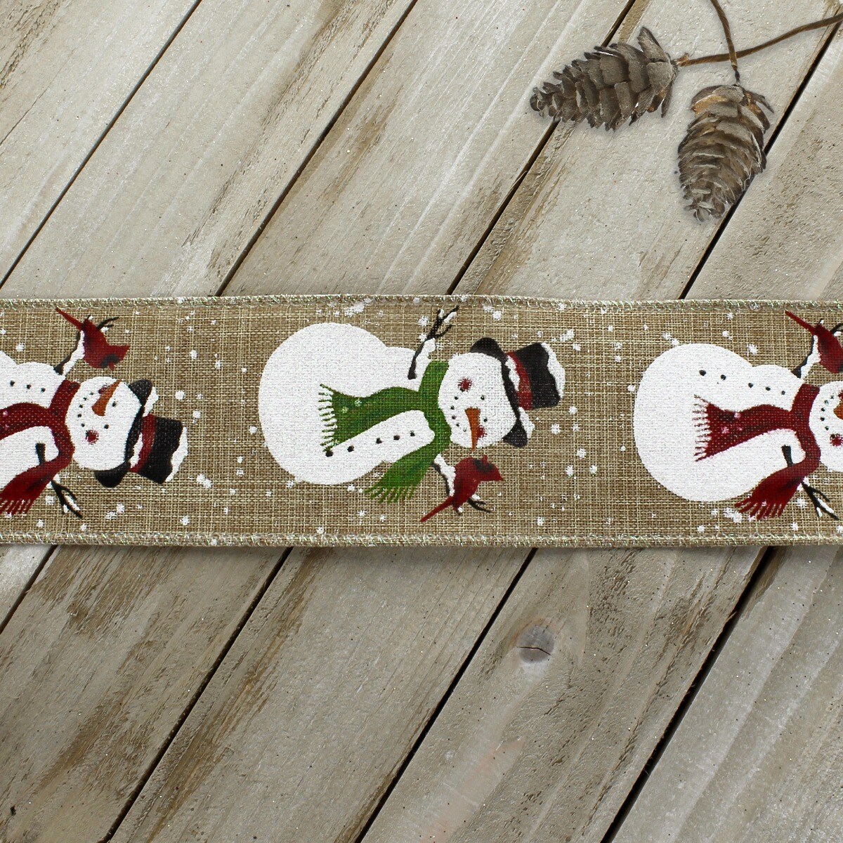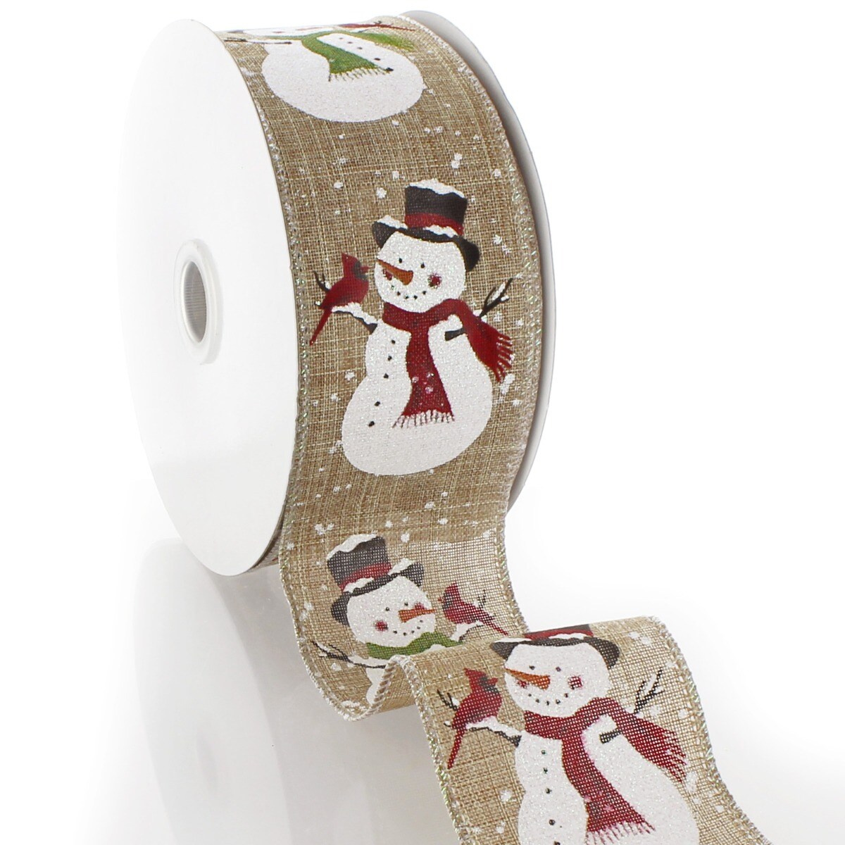 2 1/2" Wired Ribbon Snowman/Cardinal Natural- 10 Yards