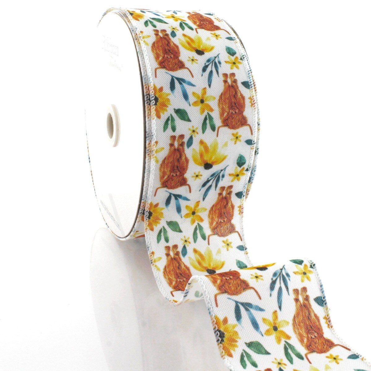 2 1/2" Wired Ribbon Sunflower Highlander Cow 25 Yards