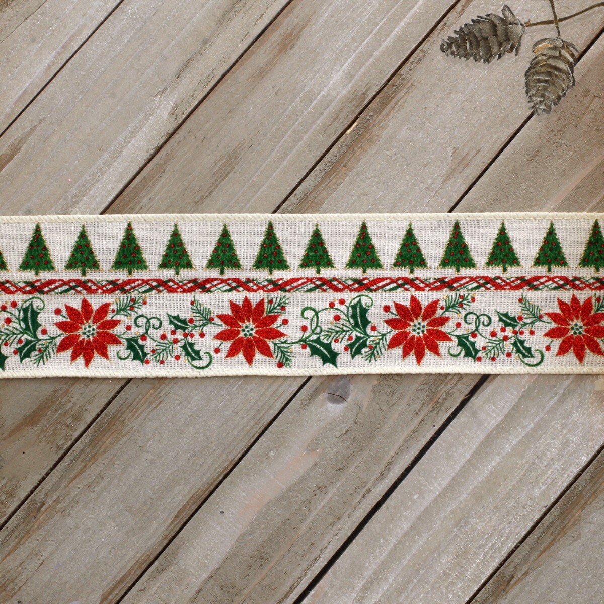 2 1/2" Wired Ribbon Vintage Holiday Poinsettia - 10 Yards