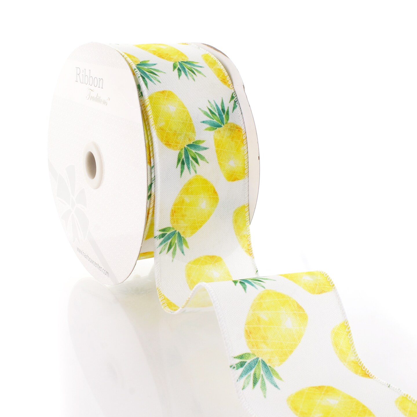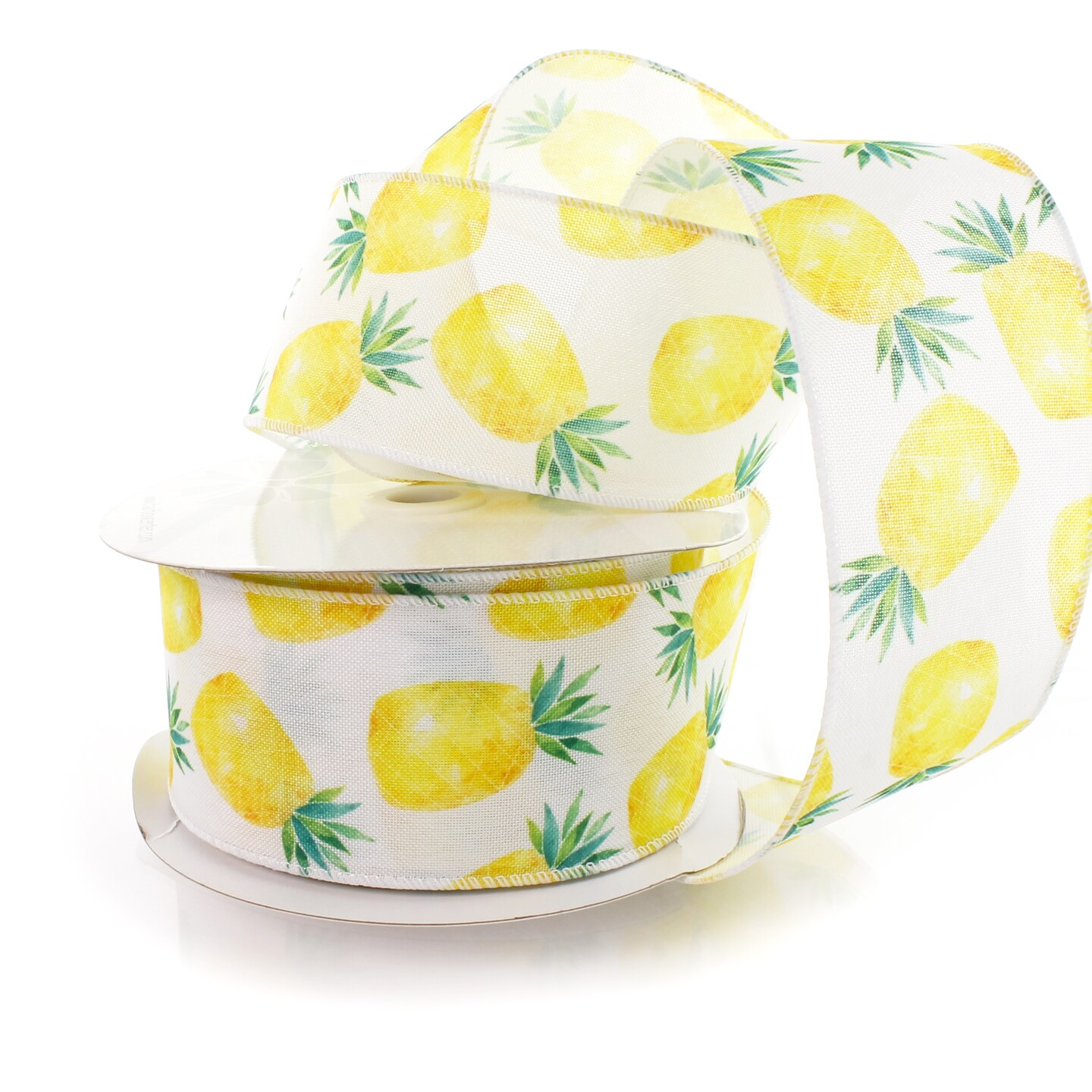 2 1/2" Wired Ribbon Watercolor Pineapple 10 Yards