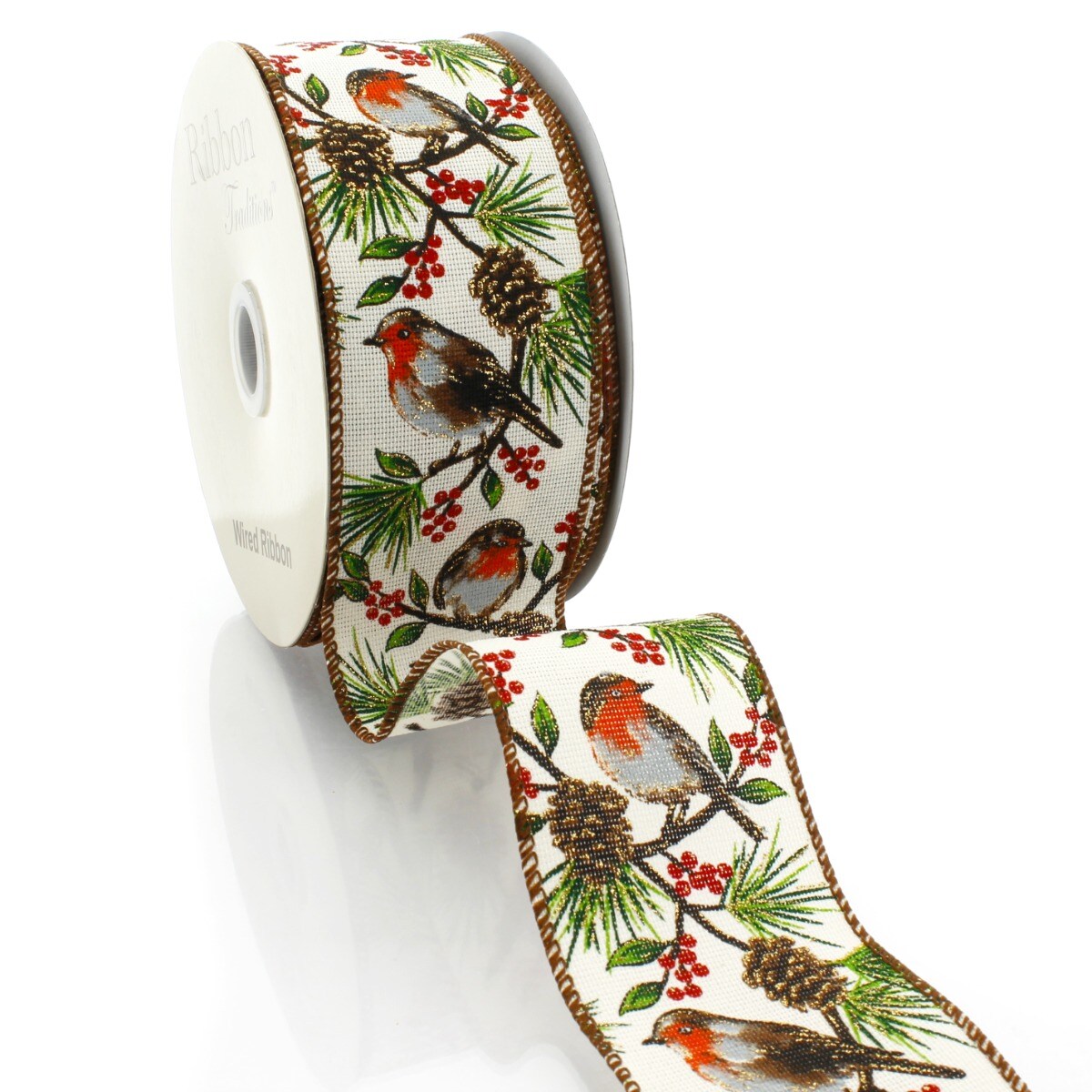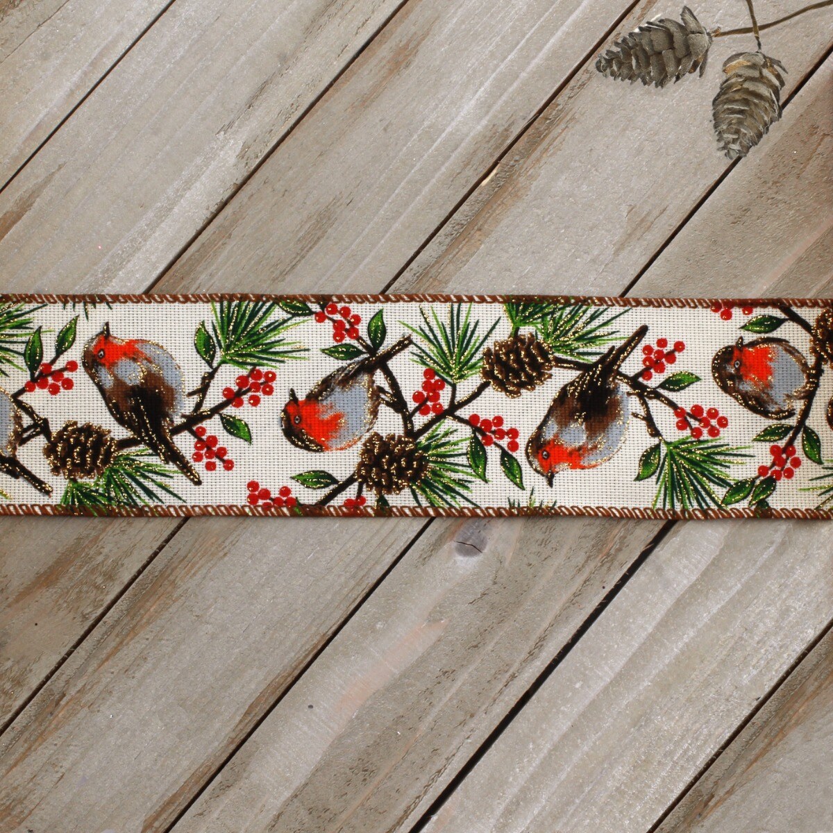 2 1/2" Wired Ribbon Winter Robin - 10 Yards