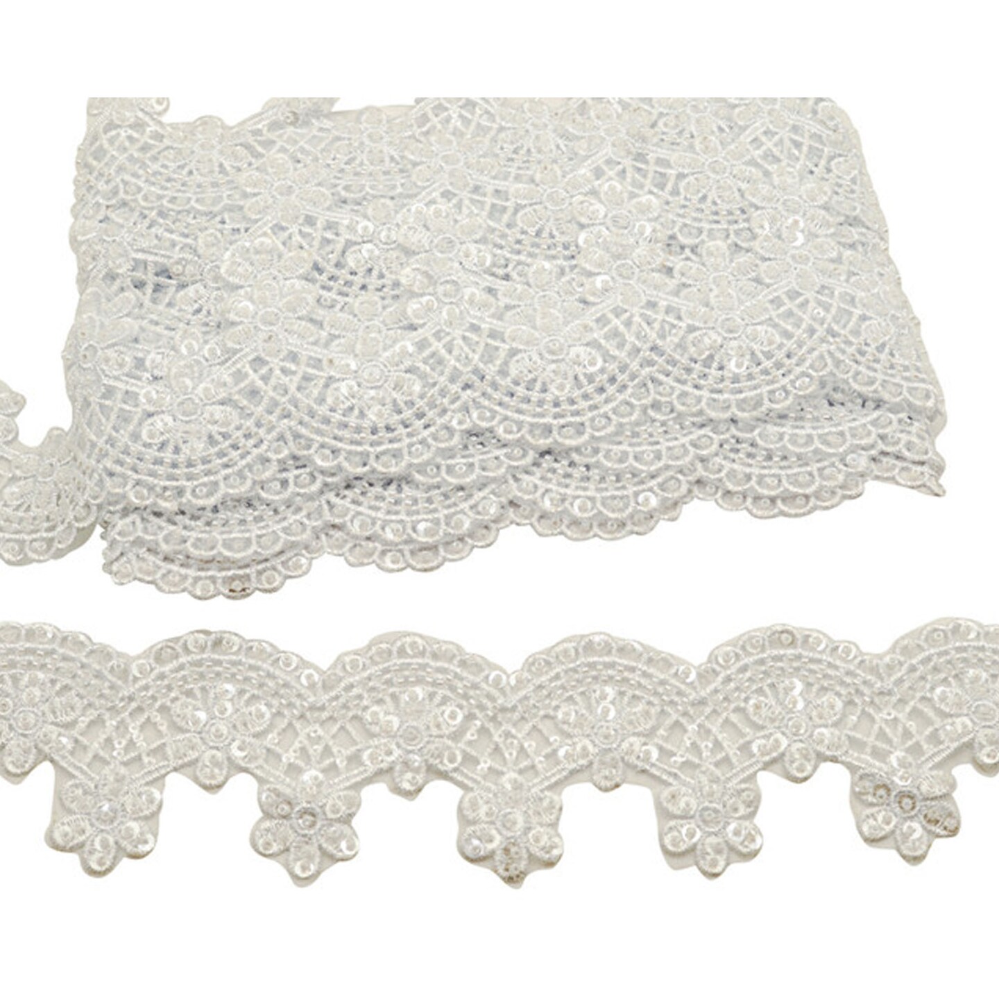 2 1/2"x 10 yards White Beaded Sequin Trim