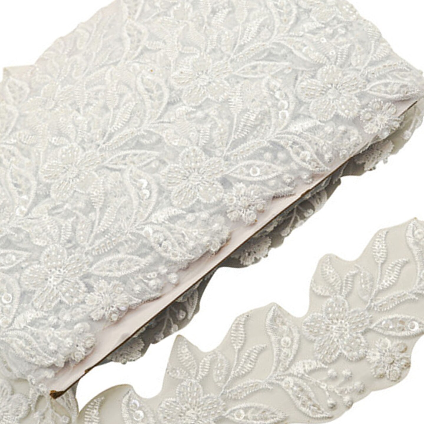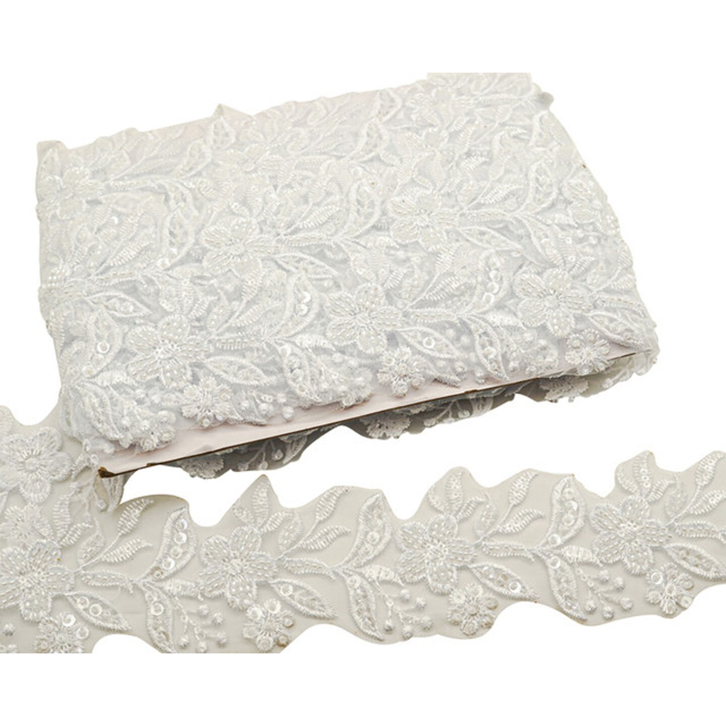 2 1/2"x 10 yards White Beaded Sequin Trim