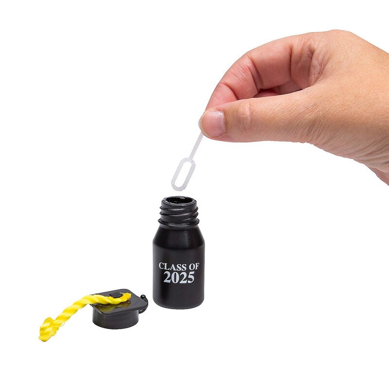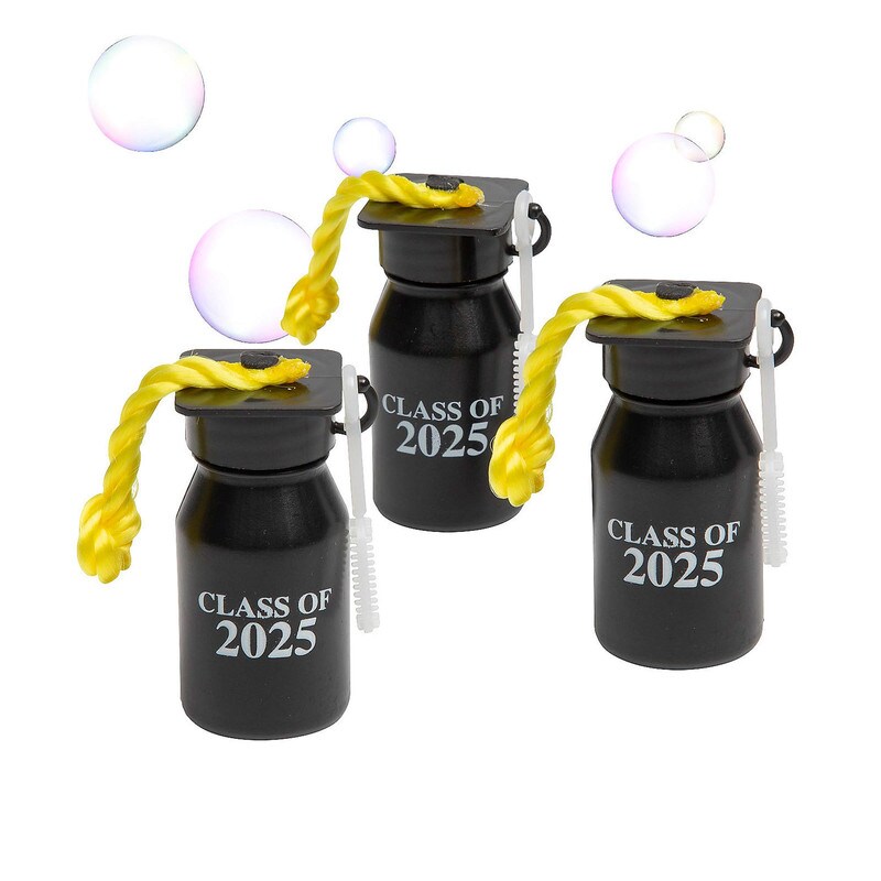 2 1/4" Graduation Class of 2025 Plastic Bubble Bottles 12 Pieces