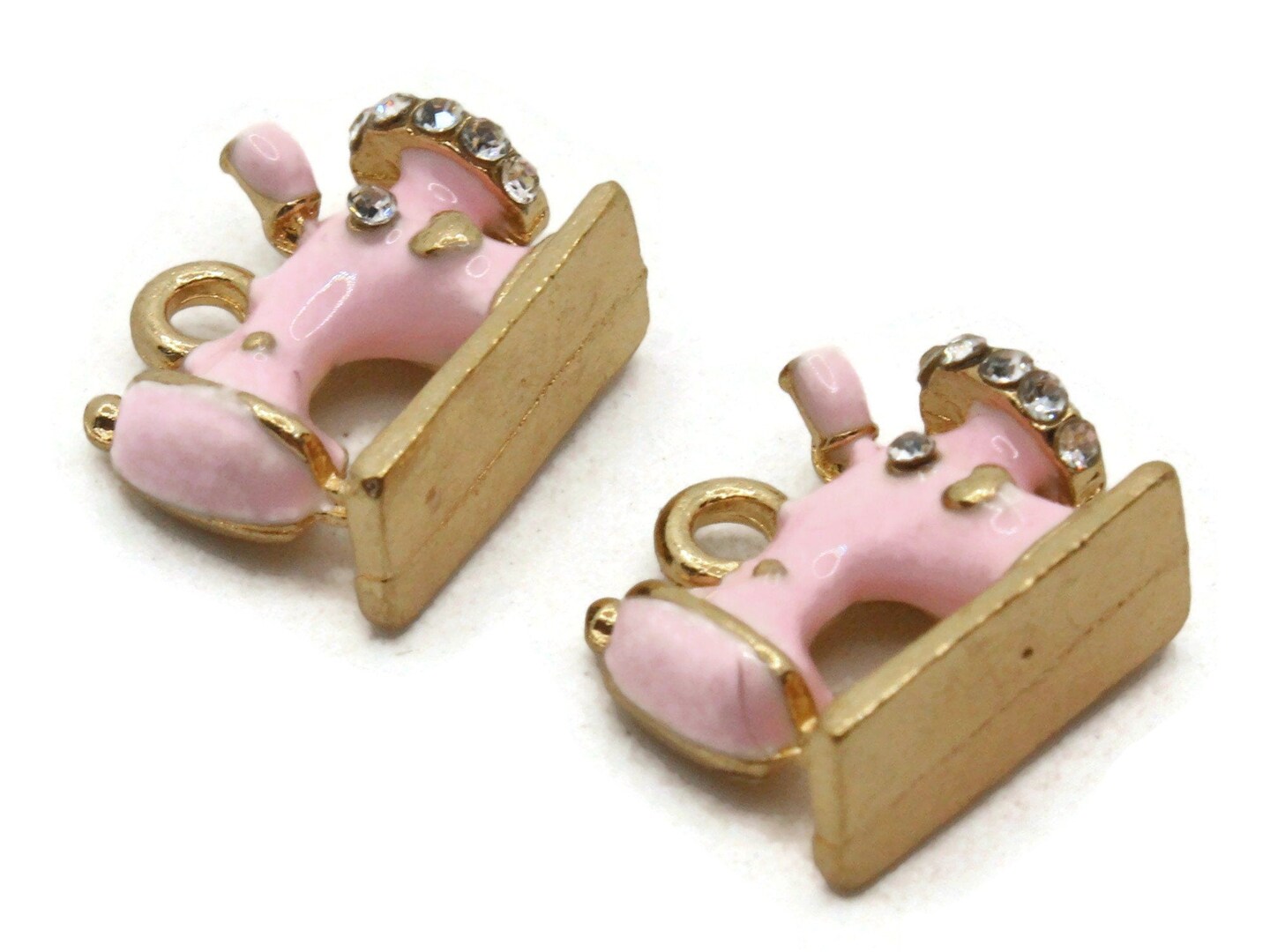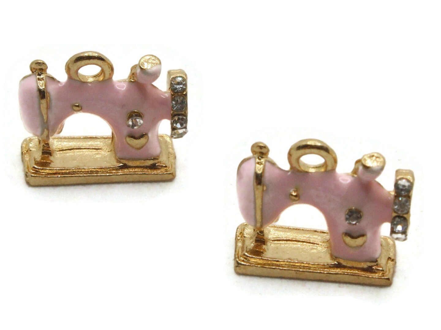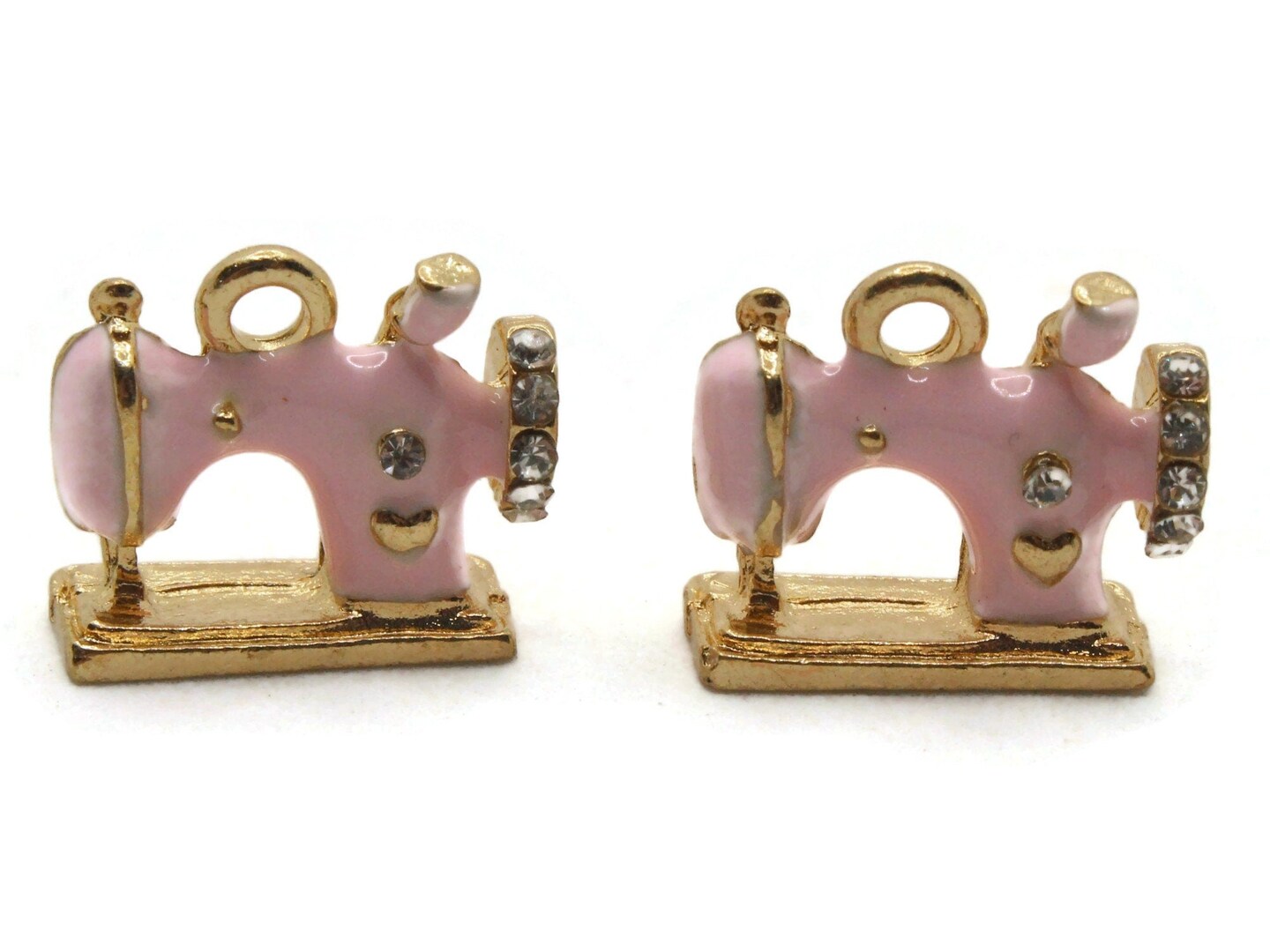2 16mm Pink Sewing Machine Beads Metal and Enamel Charms