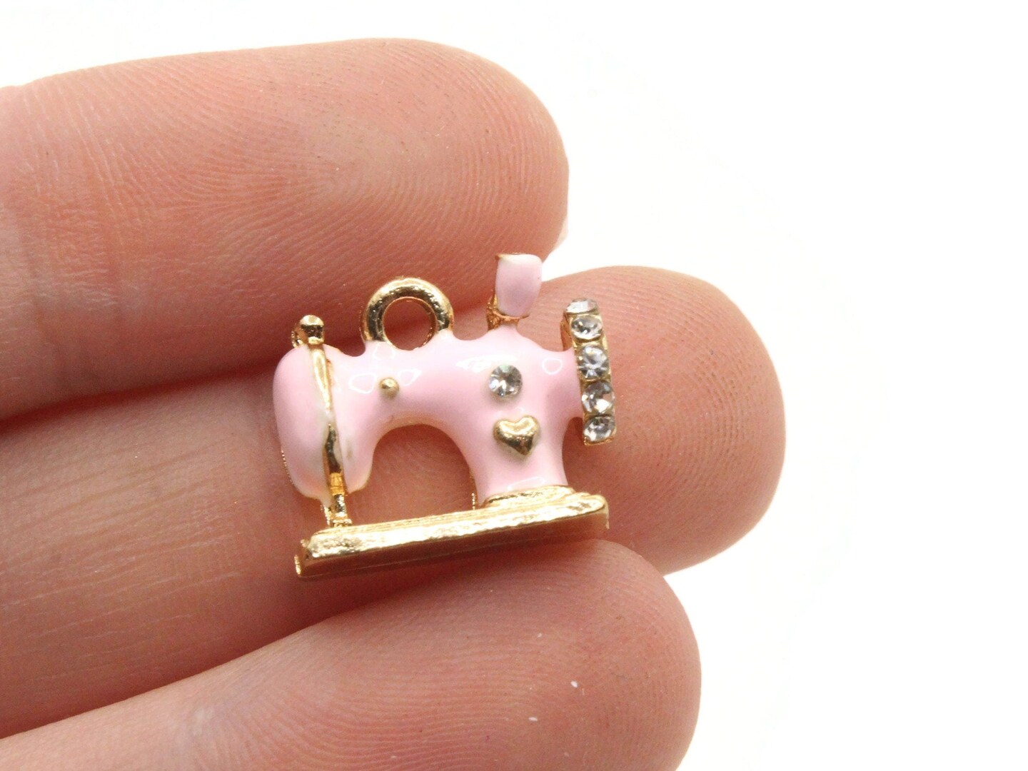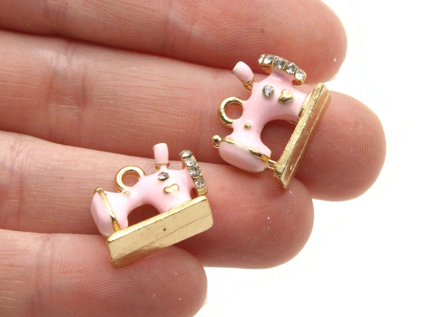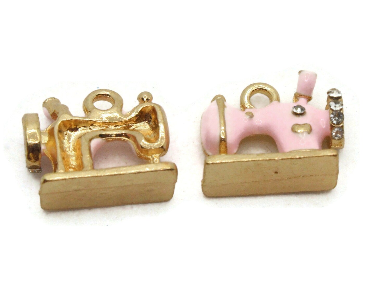 2 16mm Pink Sewing Machine Beads Metal and Enamel Charms