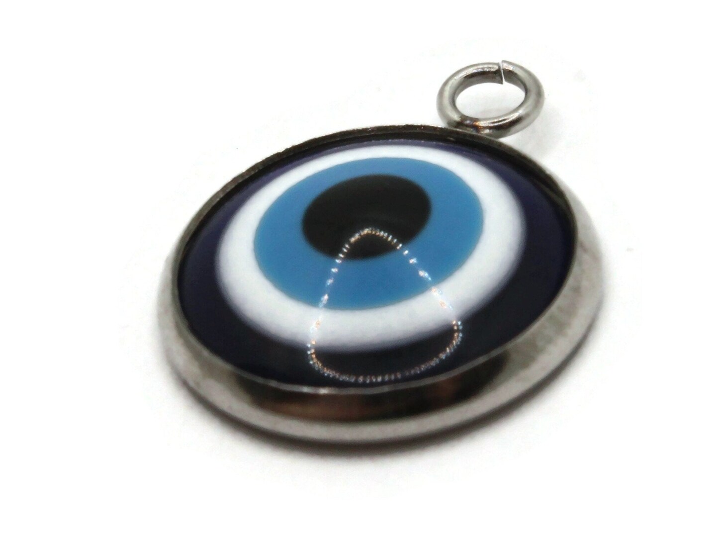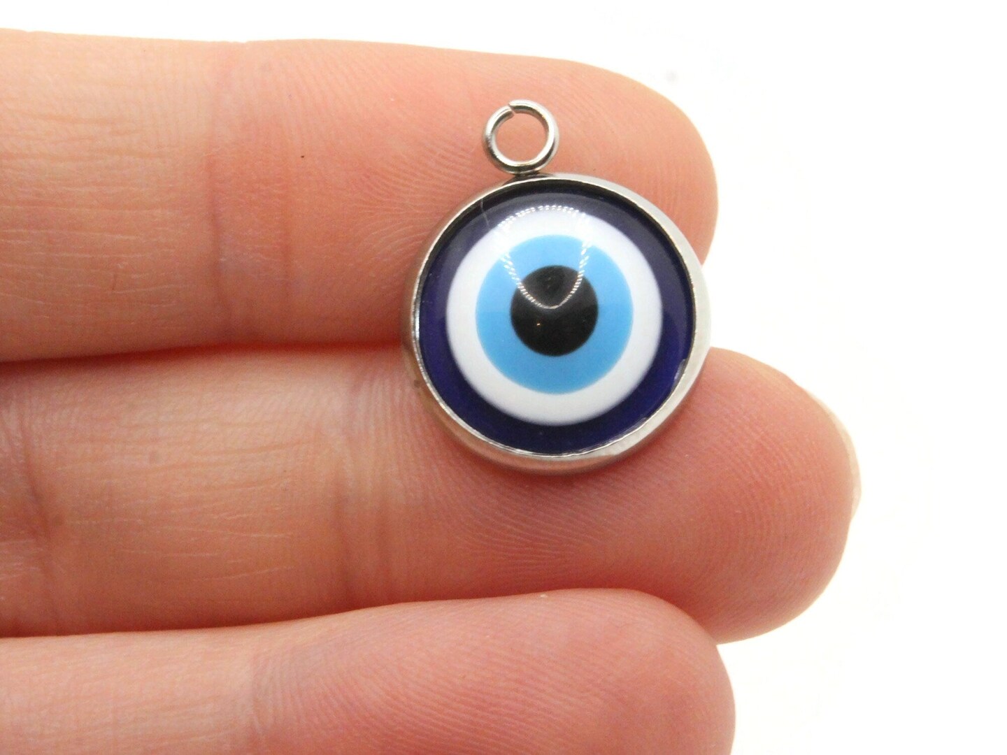 2 19.5mm Blue Evil Eye Pendants Resin and Silver 304 Stainless Steel Charms