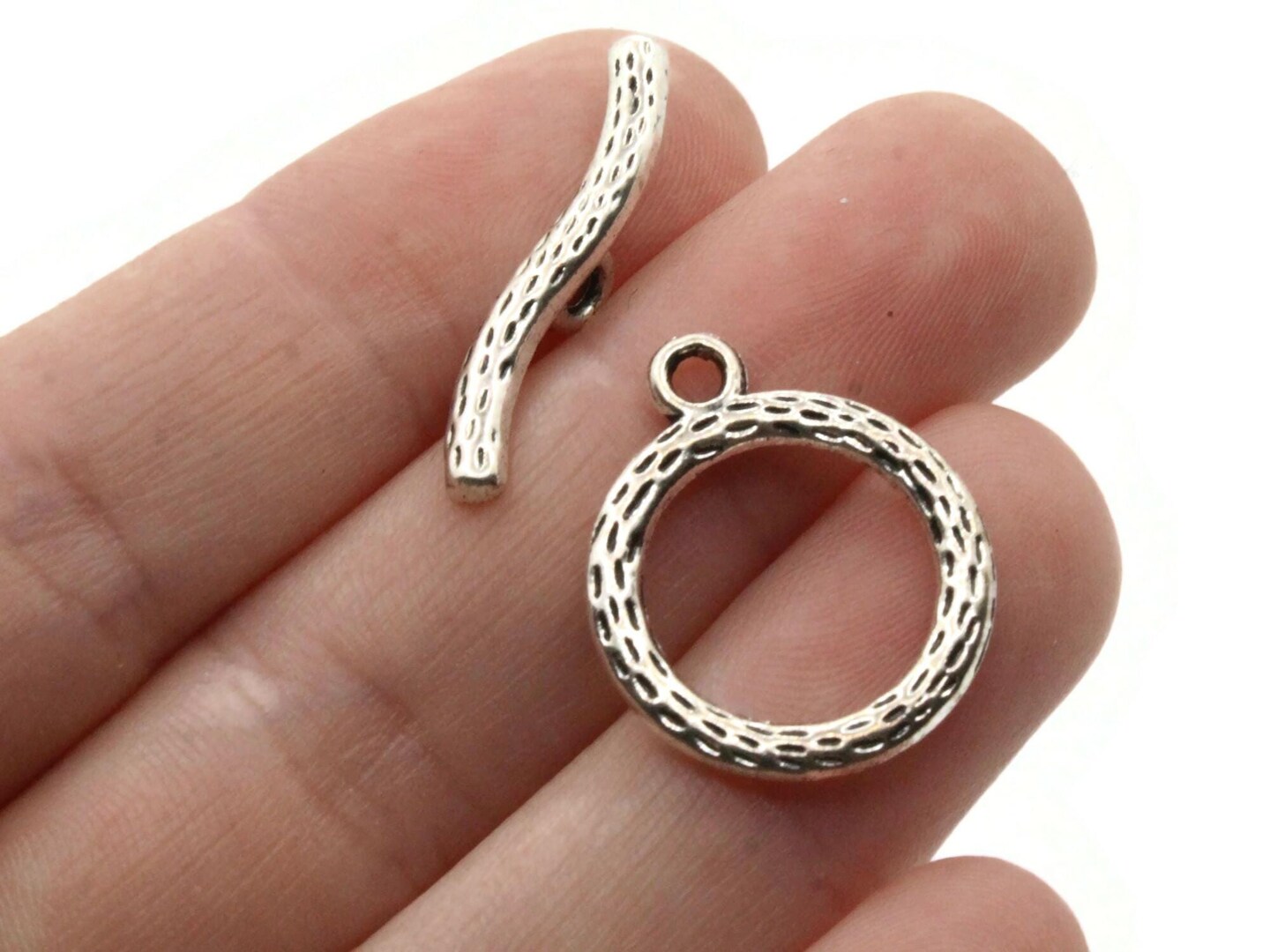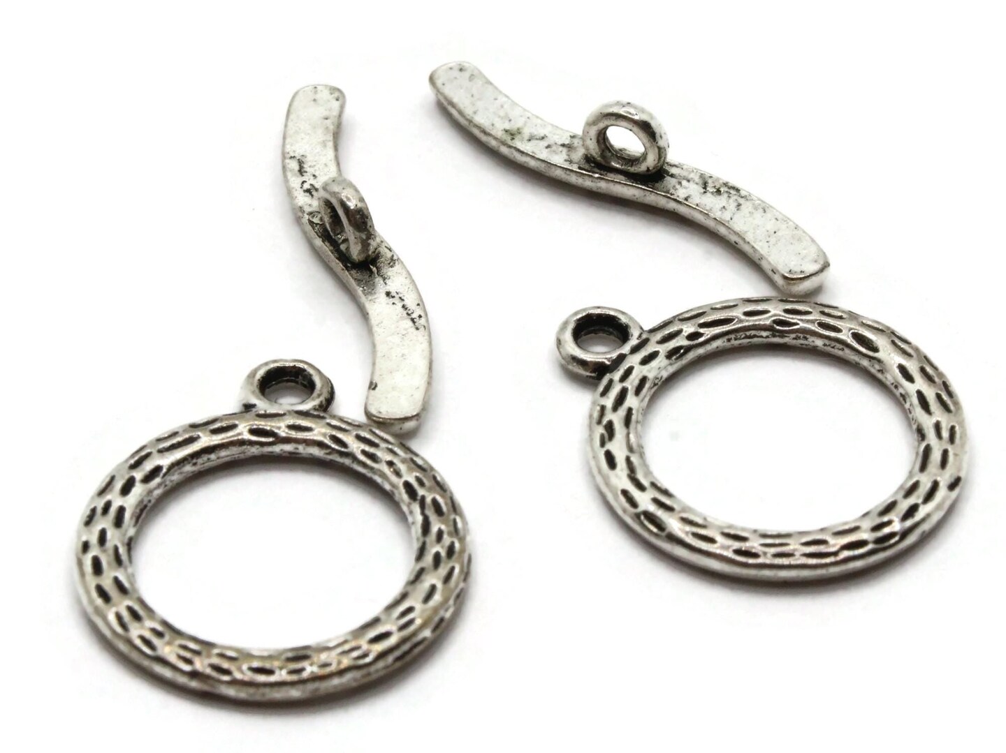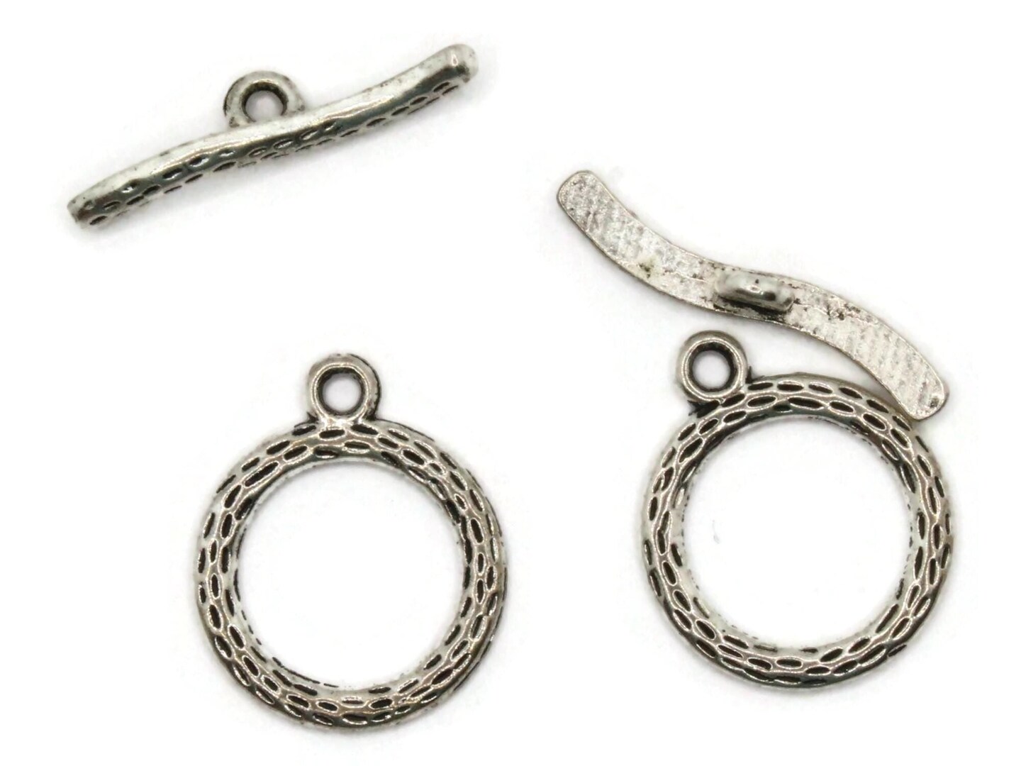 2 19mm Toggle Silver Grey Metal Clasps Ring and Bar Clasps
