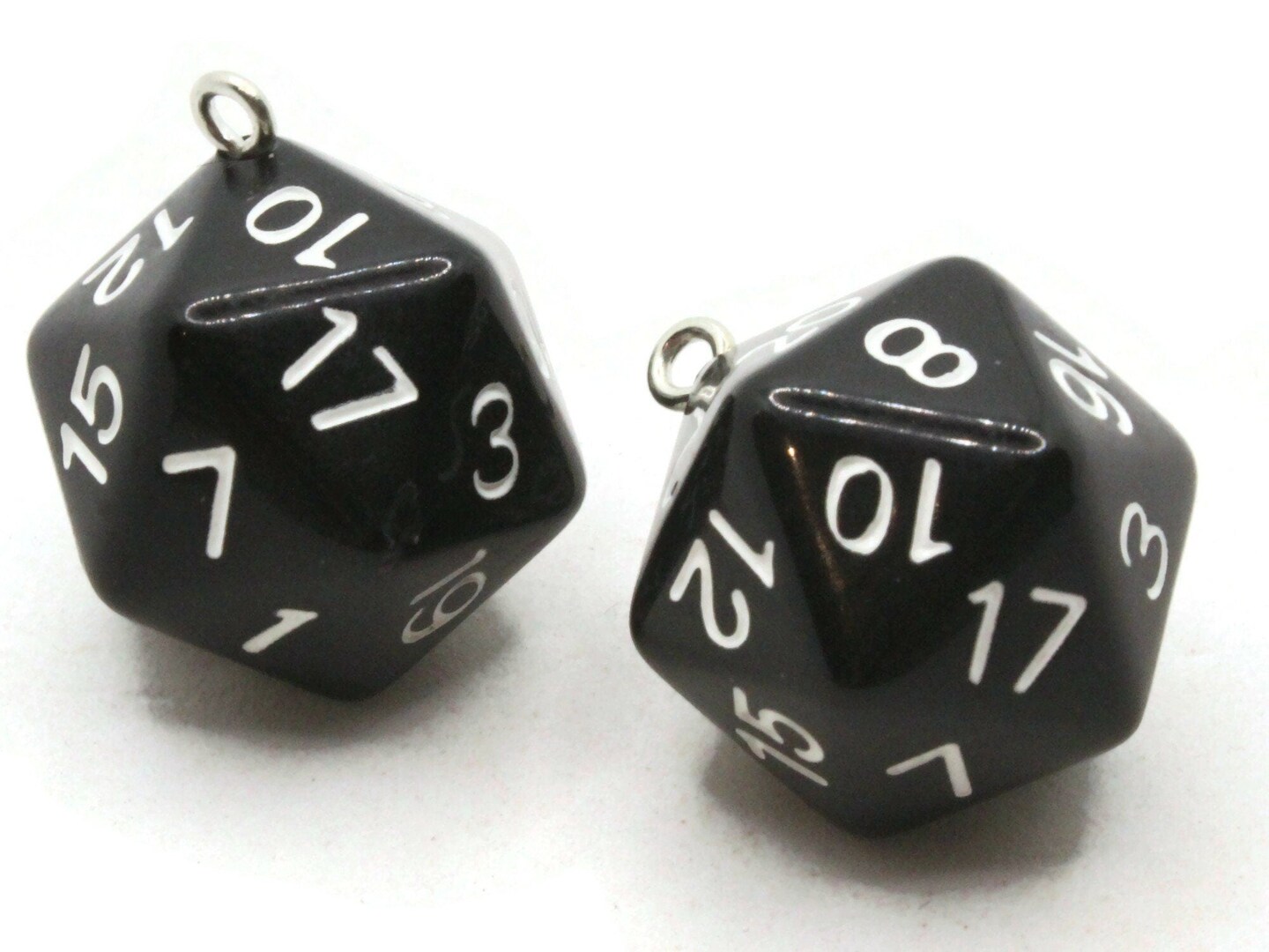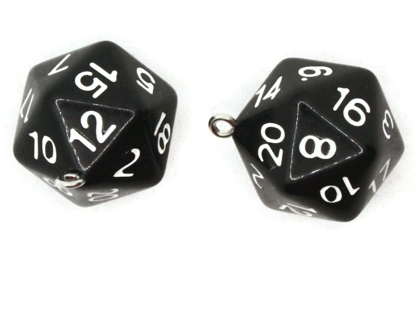 2 20mm Black Resin D20 20 Sided Dice Charms