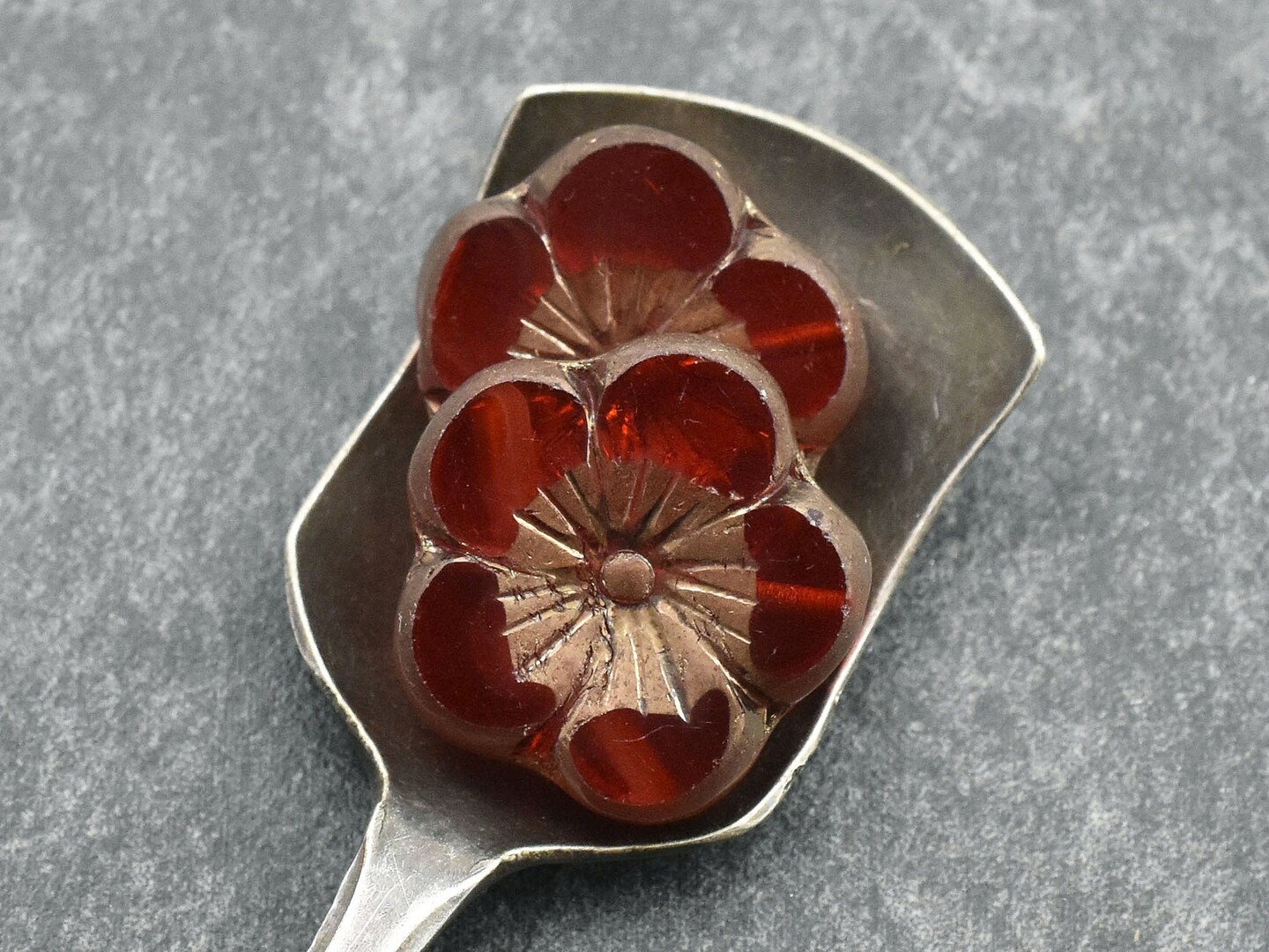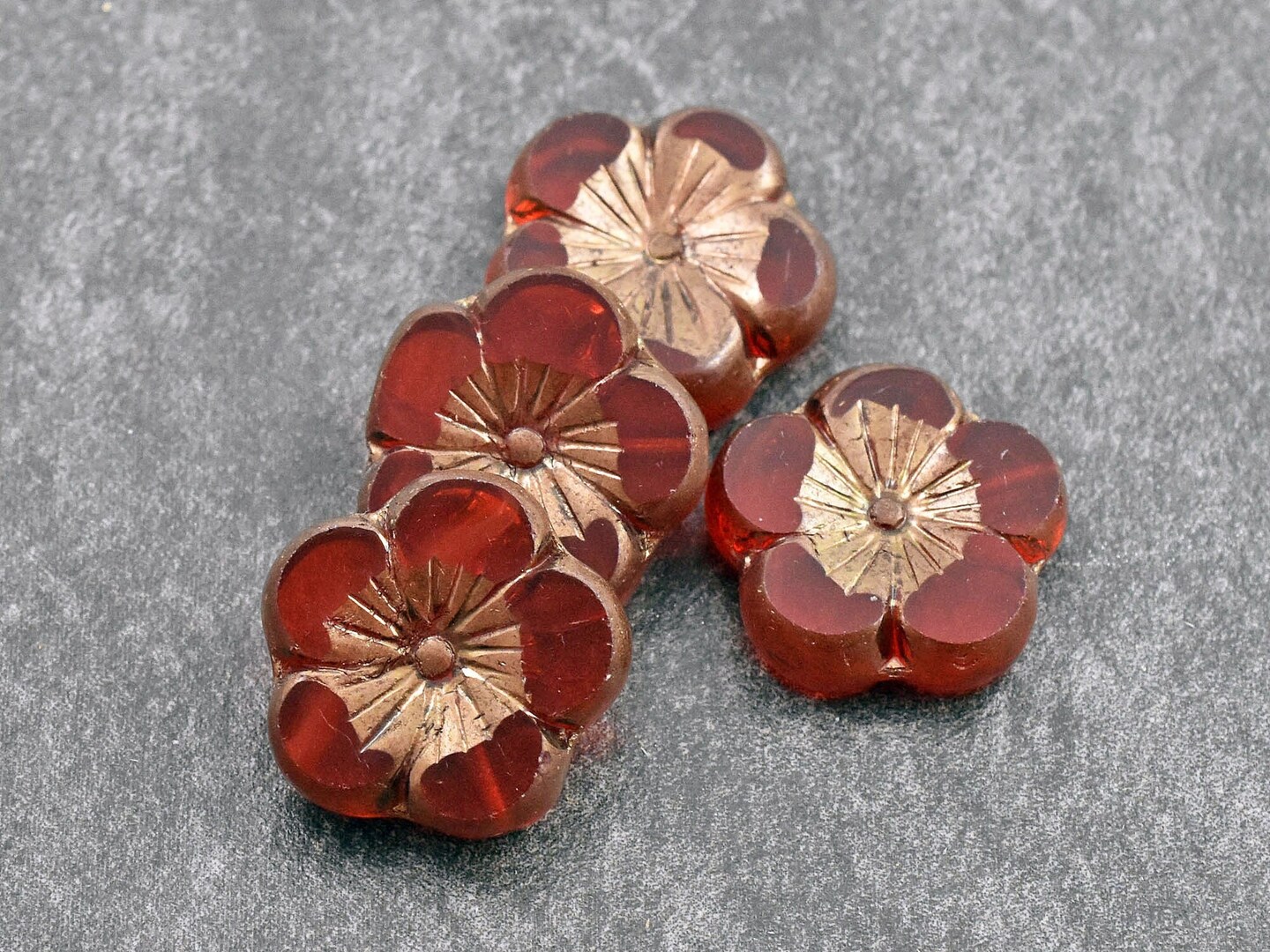 *2* 22mm Bronze Washed Red Orange Table Cut Hawaiian Flower Beads
