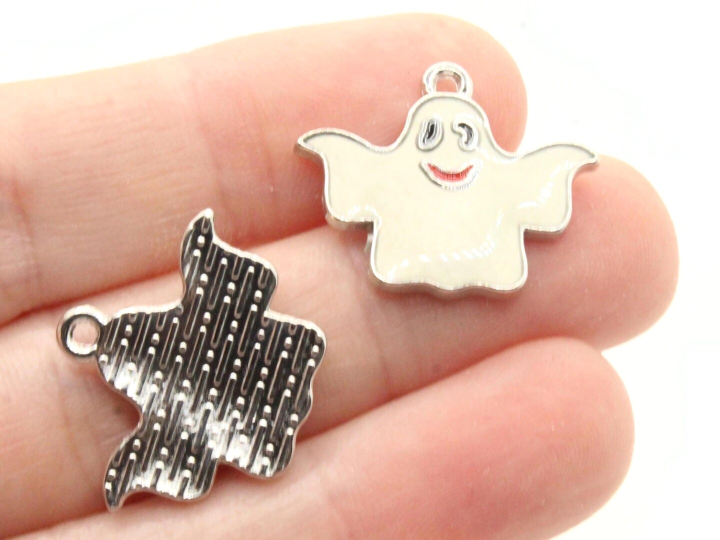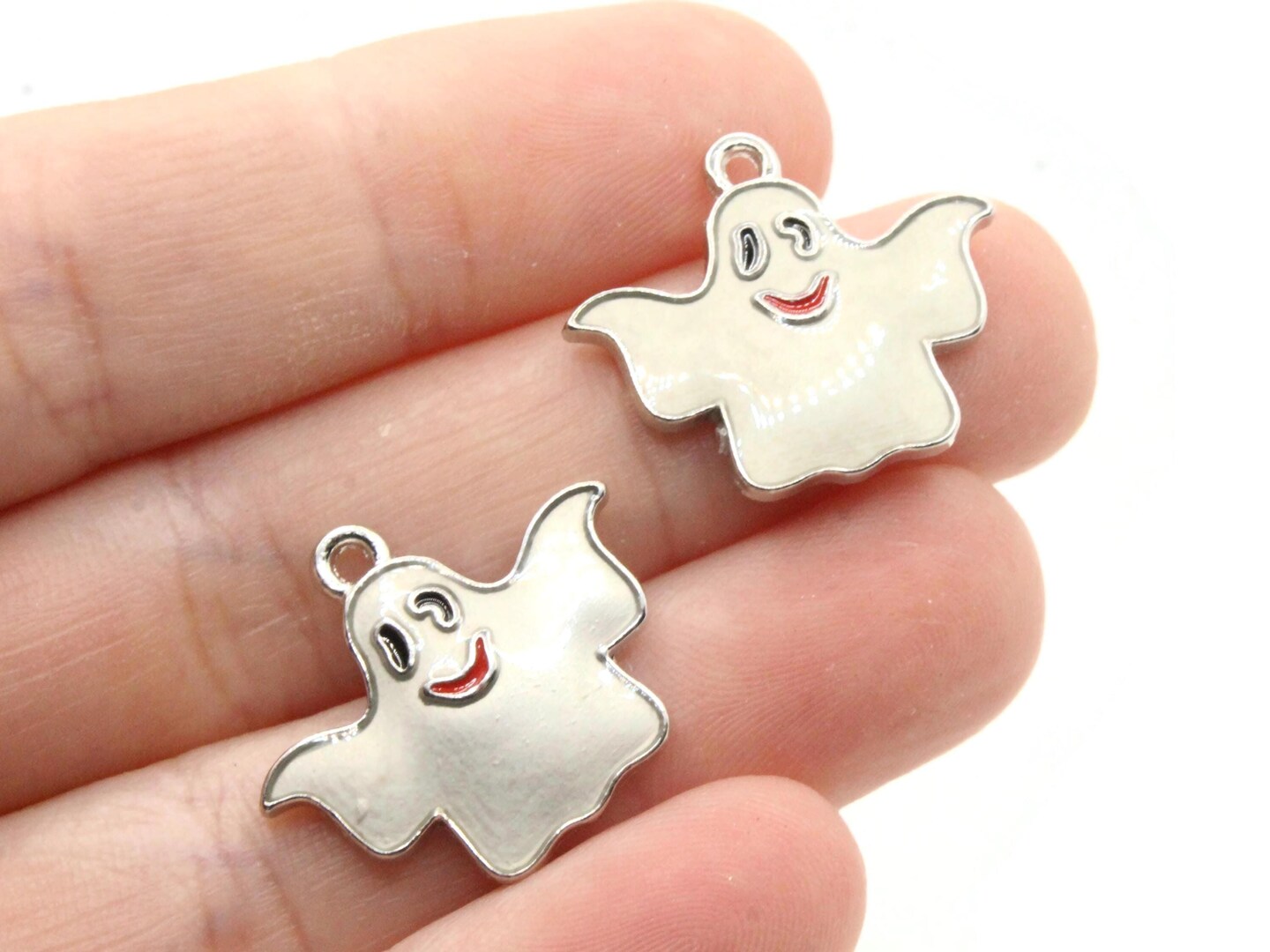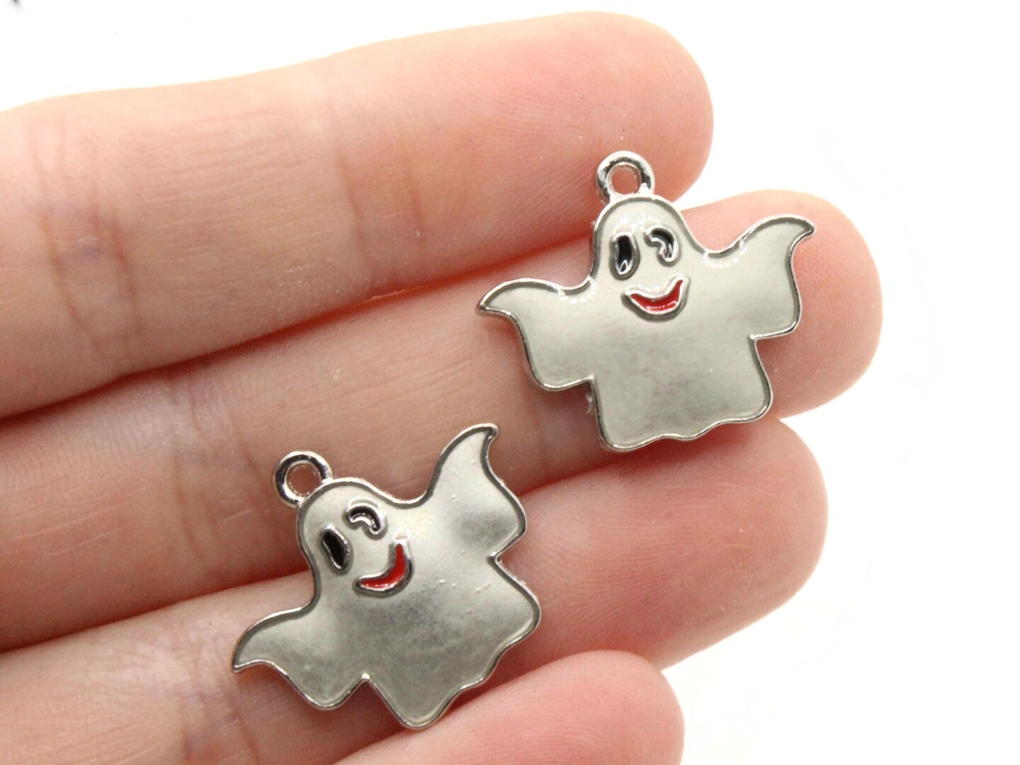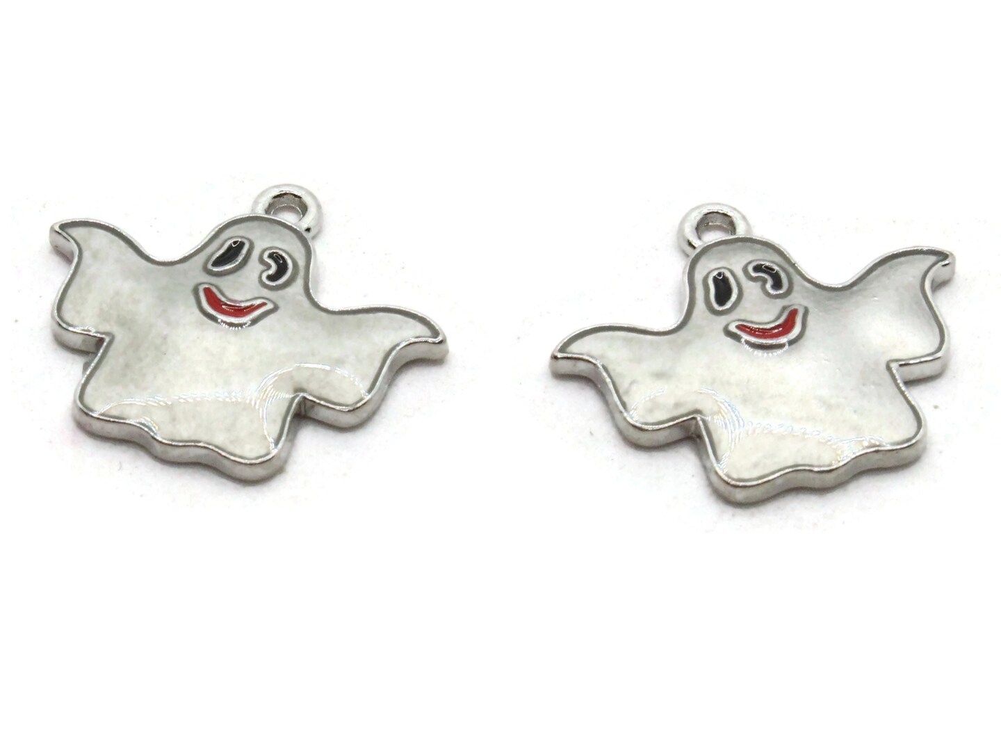 2 23mm Glow in the Dark Ghost Metal and Enamel Charms