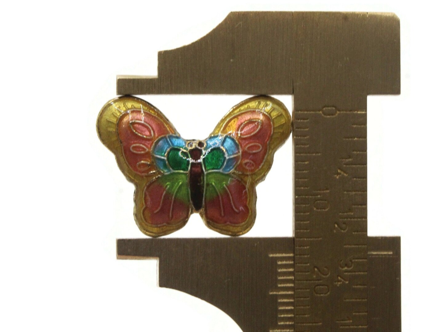 2 23mm Yellow and Pink Butterflies Cloisonne Metal Butterfly Beads