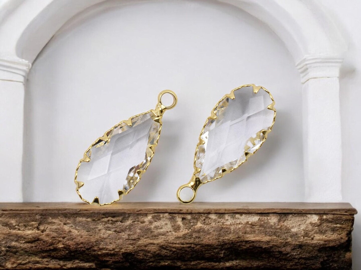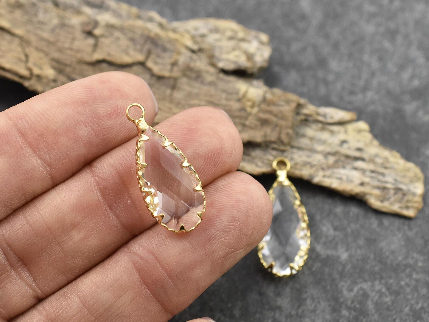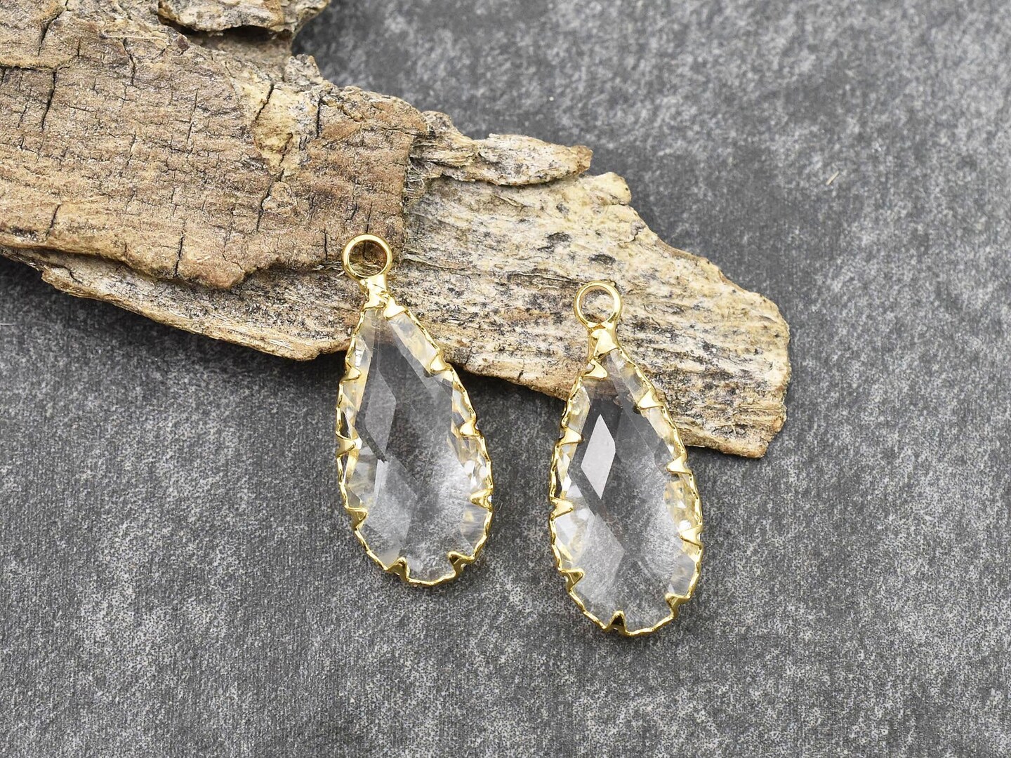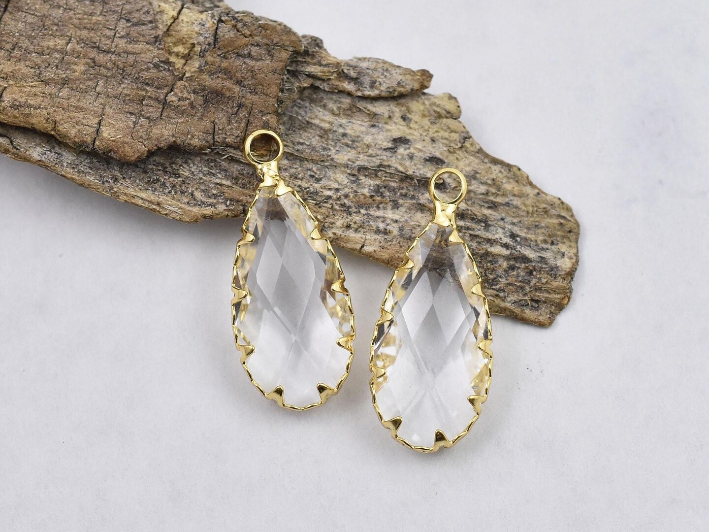 *2* 24x11mm 18k Gold Plated Brass Faceted Clear Glass Teardrop Pendants