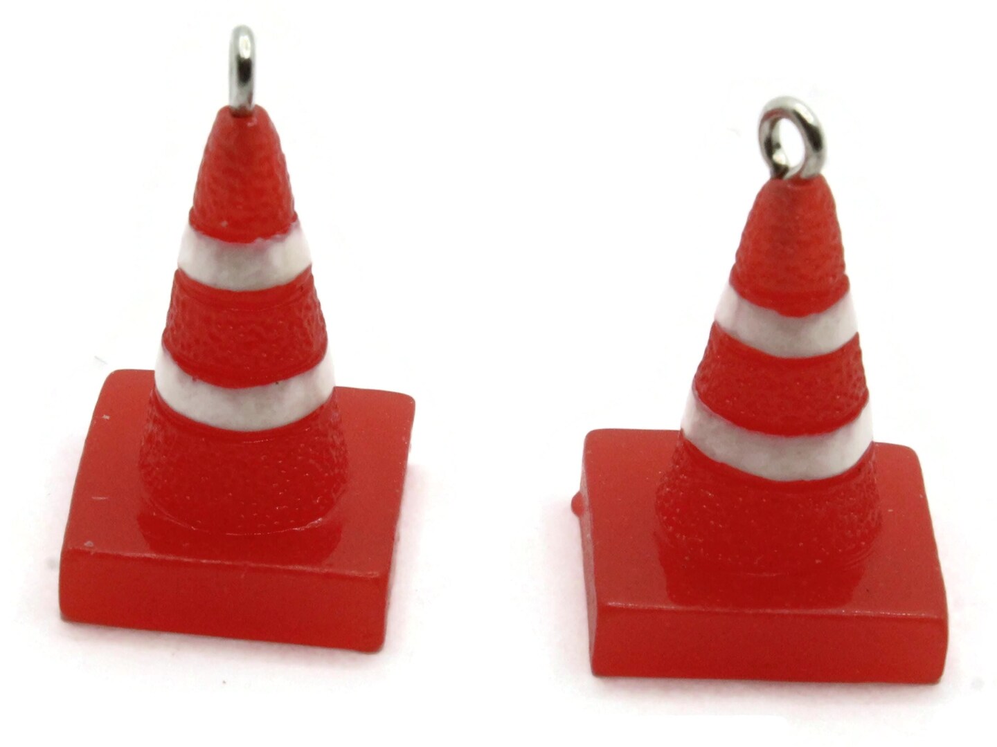 2 29mm Miniature Orange Safety Cone Resin Charms