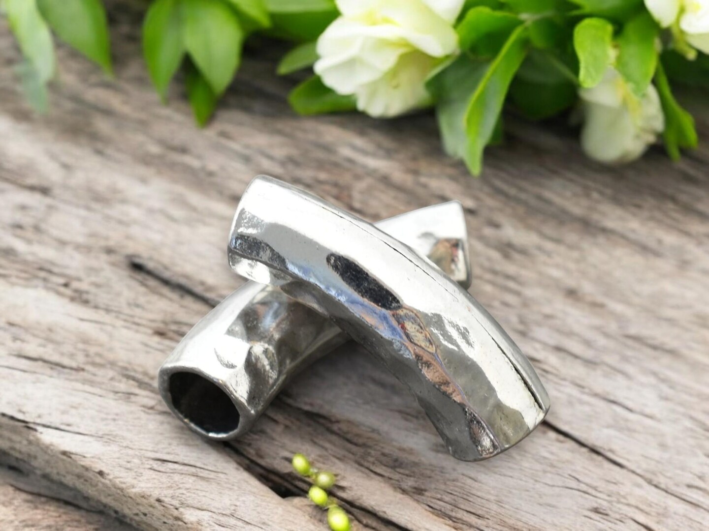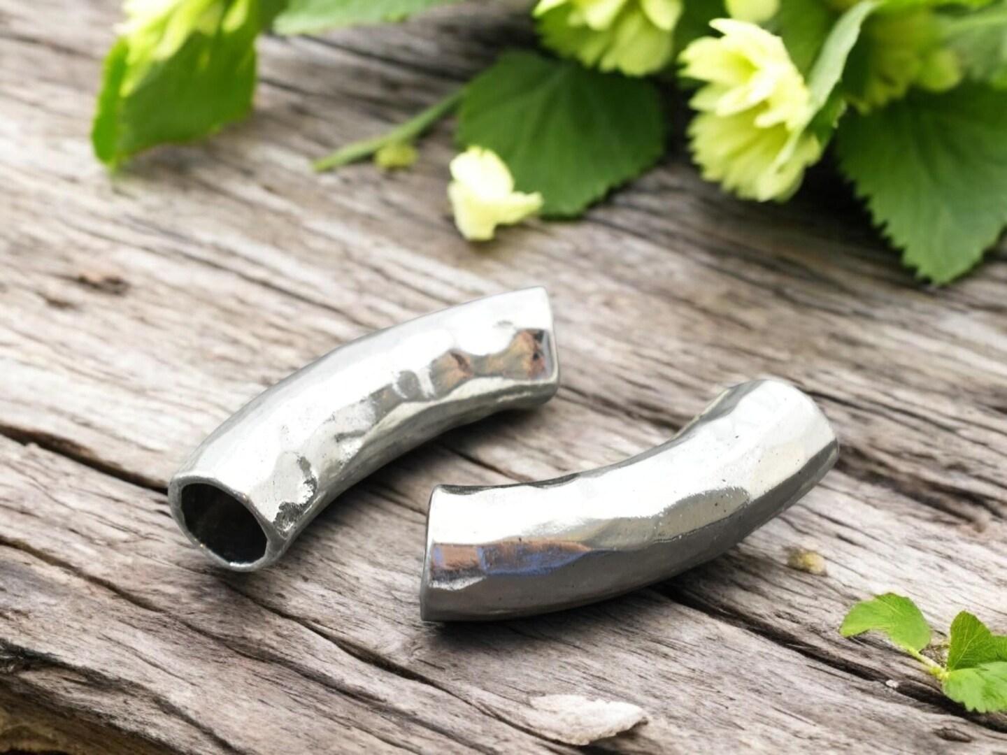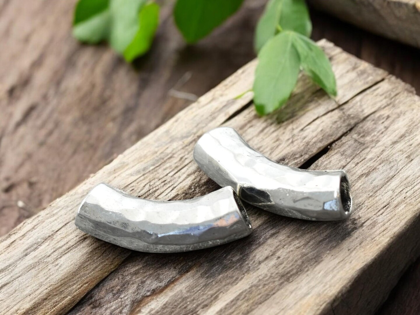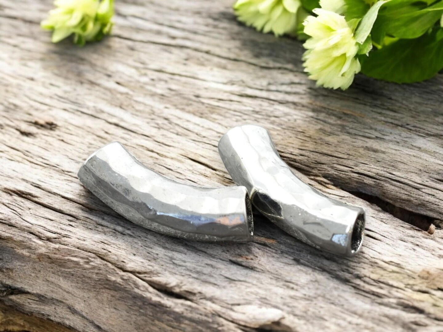 *2* 31x9mm Antique Silver Hammered Curved Tube Beads