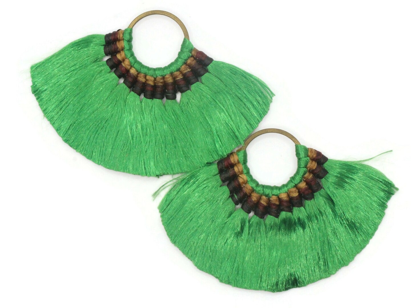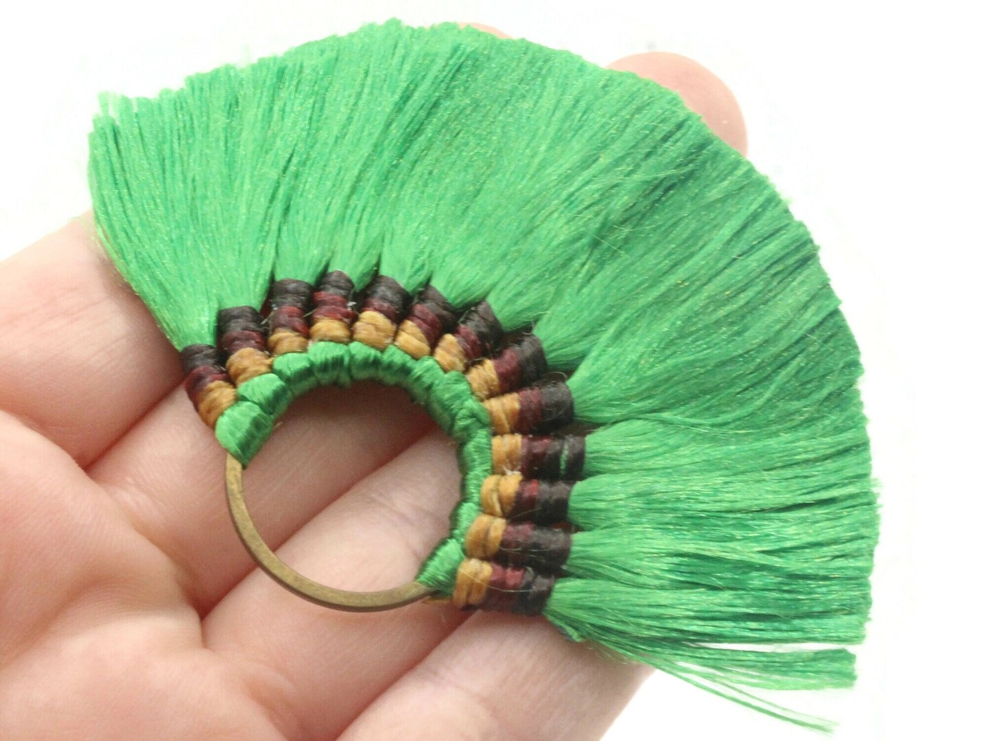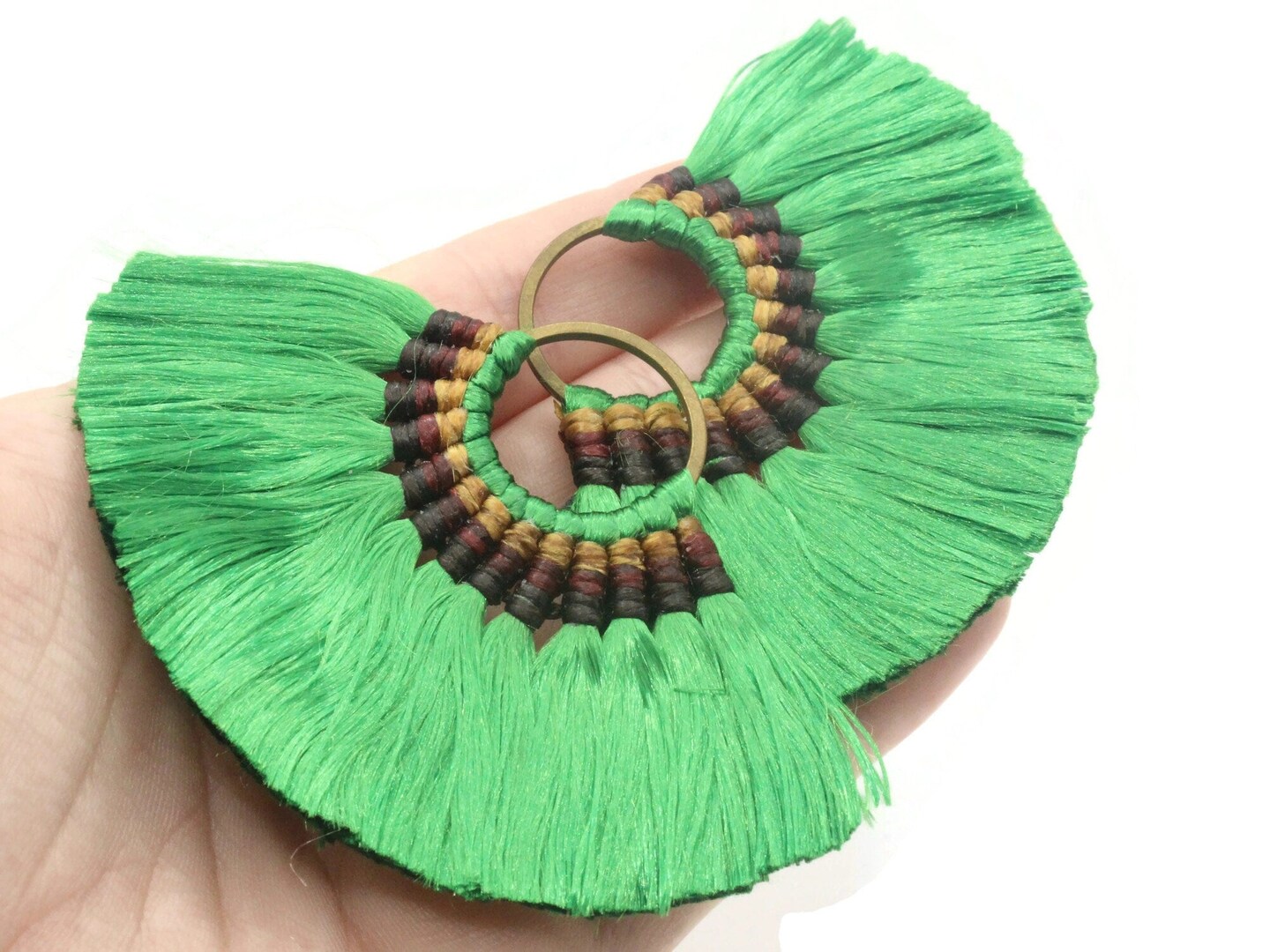 2 3.25 Inch Green with Multi-Color Thread Fan Tassel Pendants