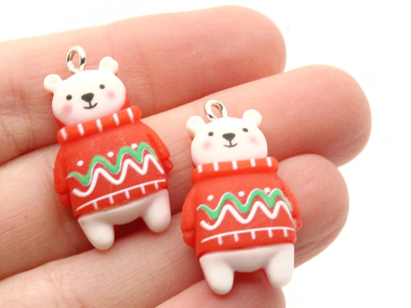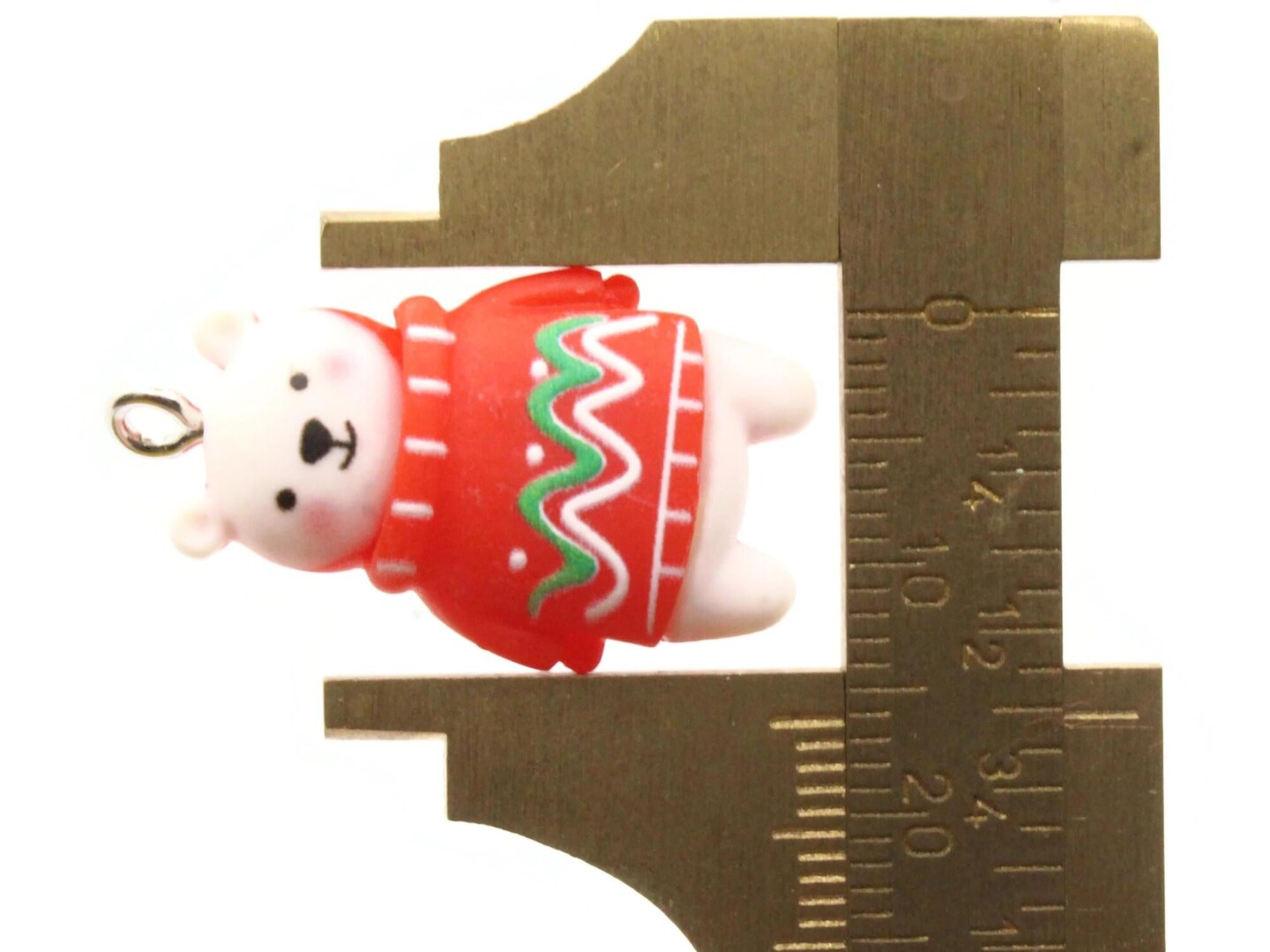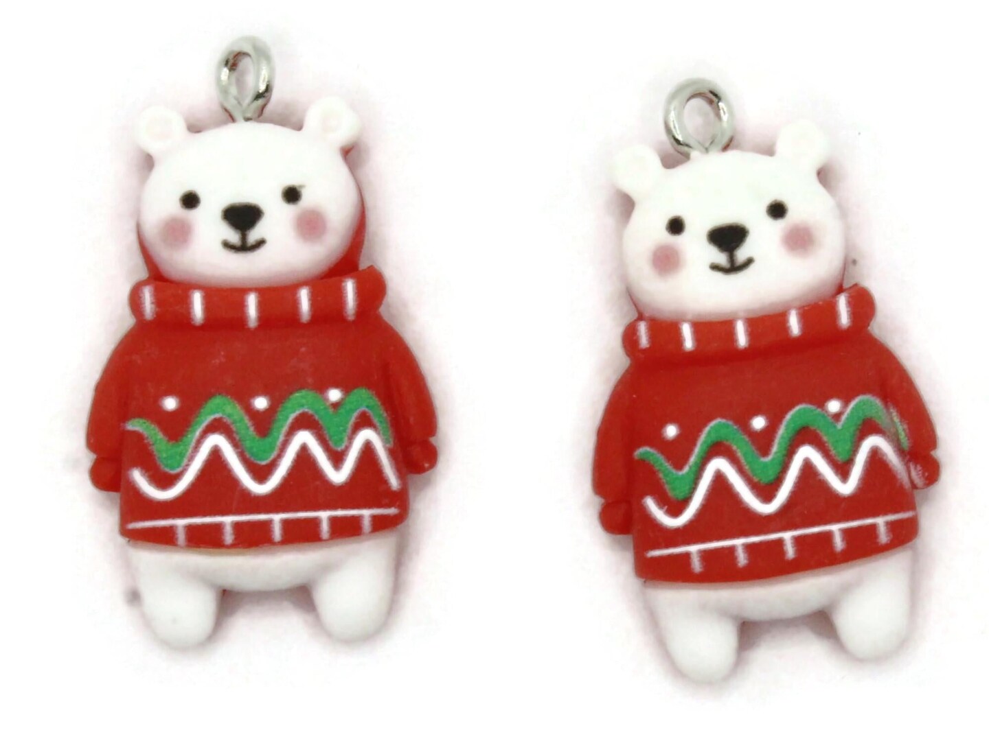 2 33mm White Polar Bear with Red Sweater Resin Charms
