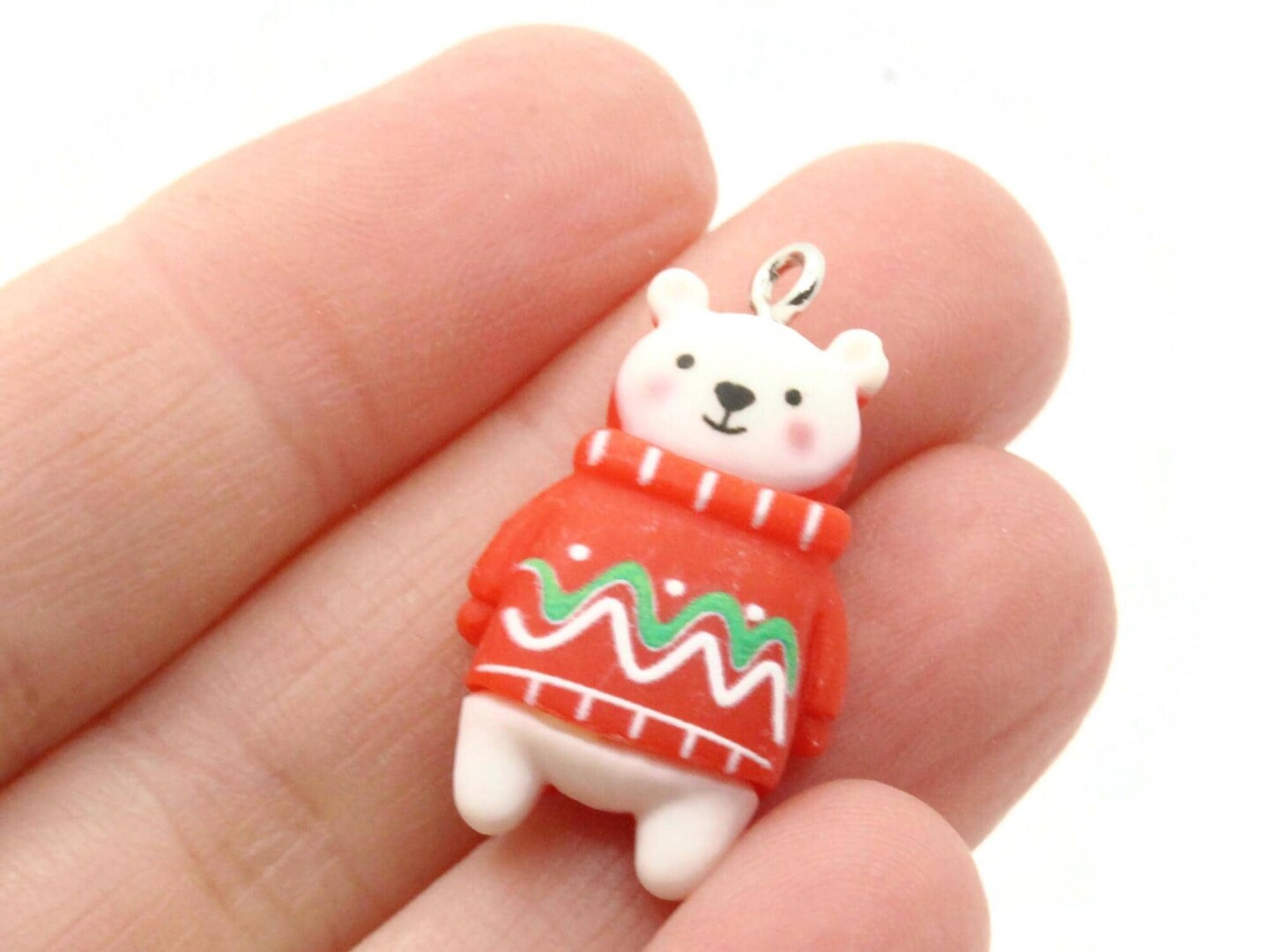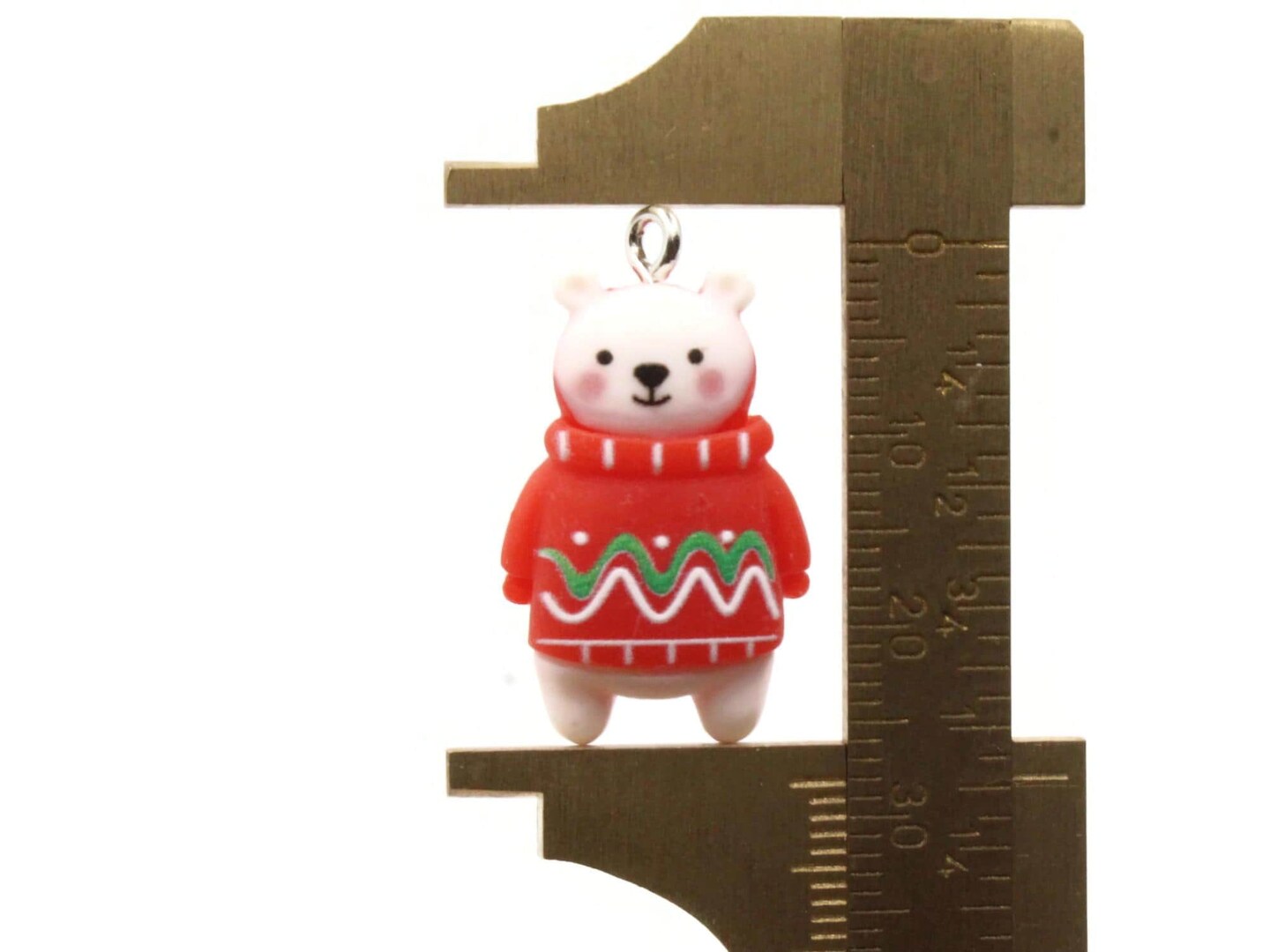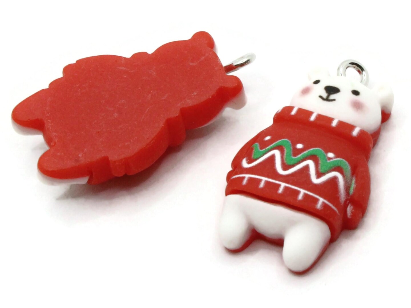2 33mm White Polar Bear with Red Sweater Resin Charms
