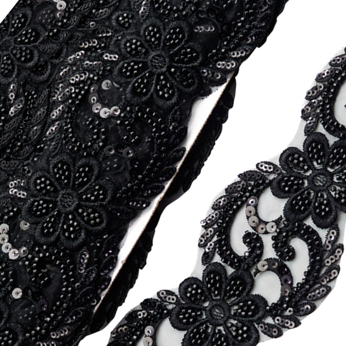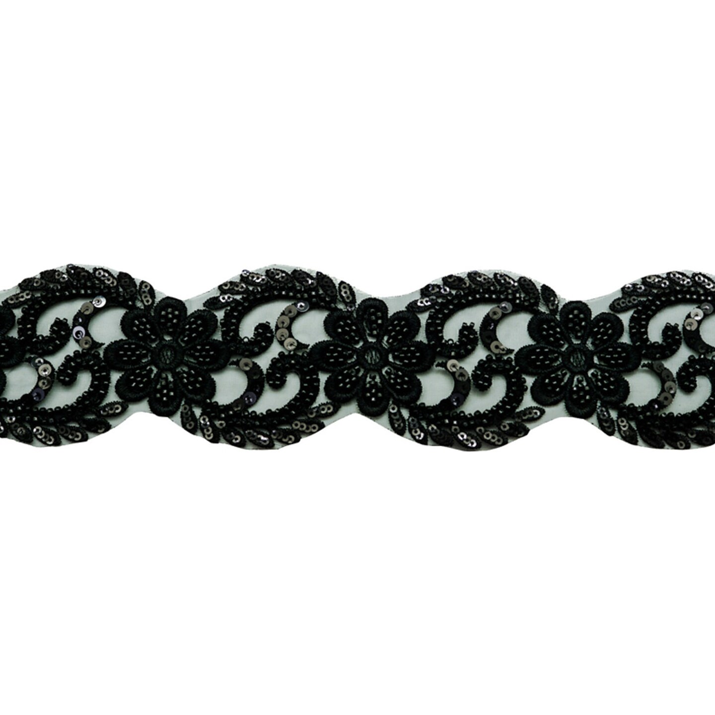 2 3/4"x 10 yards Black Beaded Sequin Trim