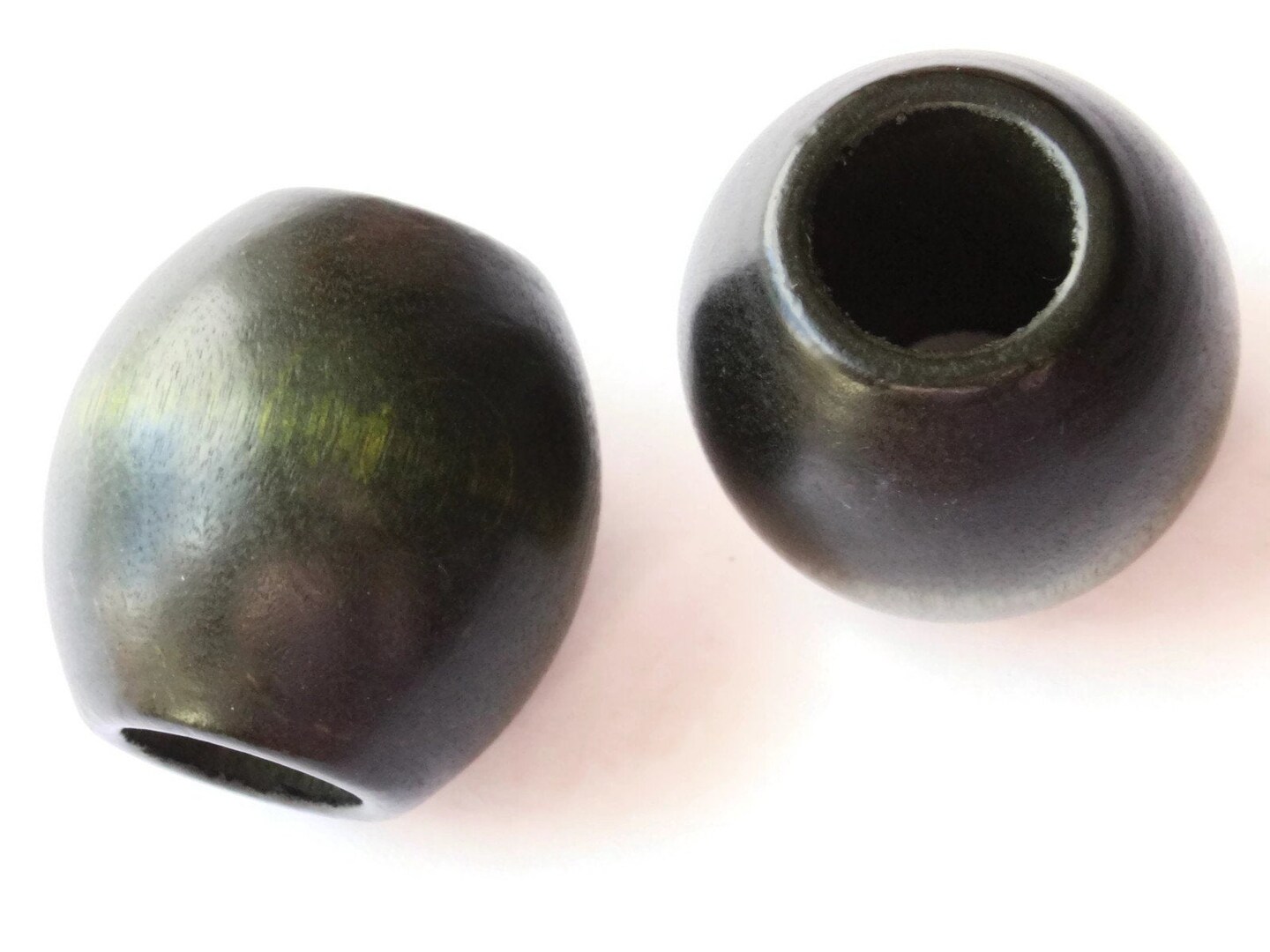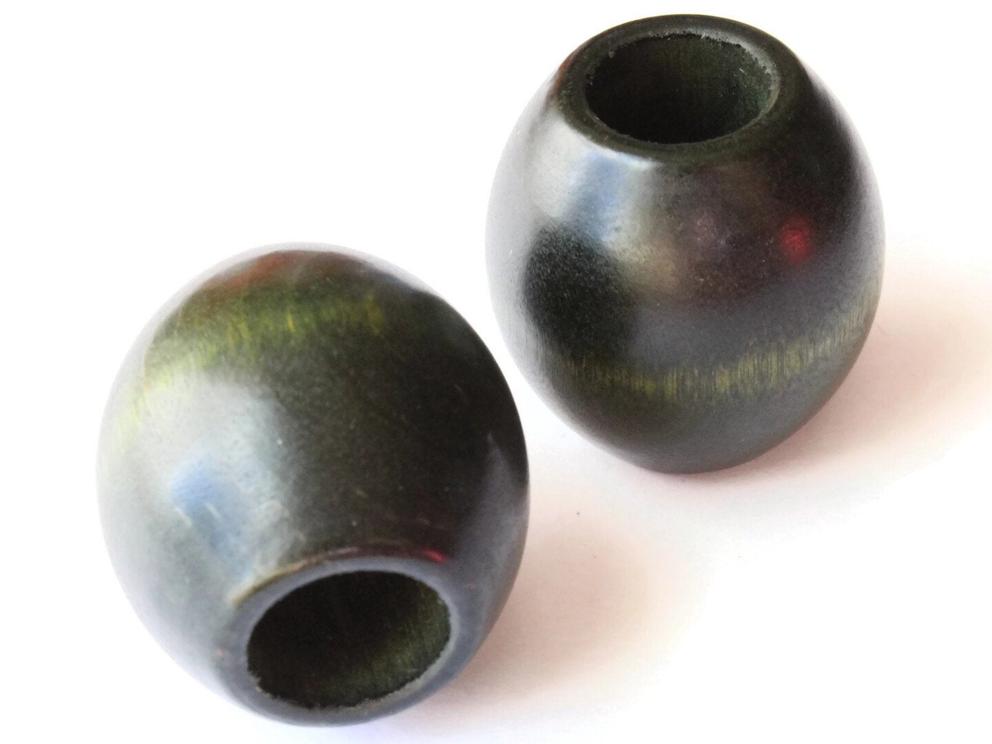 2 36mm Green Wood Oval Large Hole Beads Vintage Wooden Barrel Beads Chunky Macrame Beads